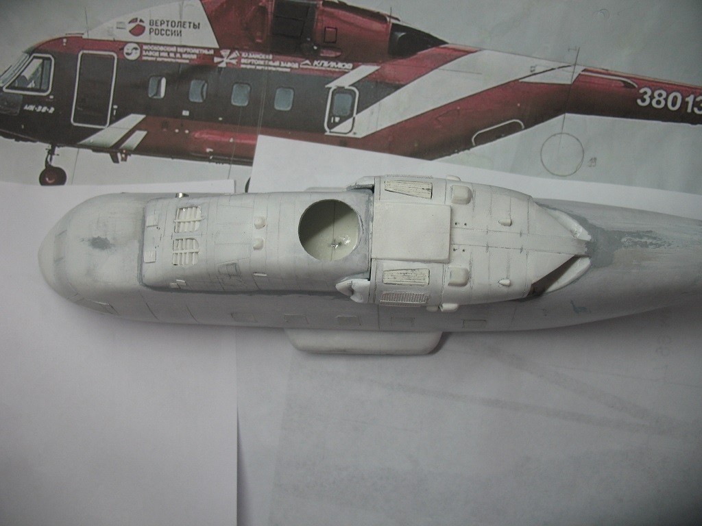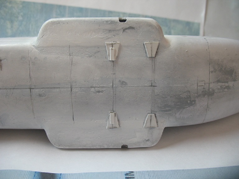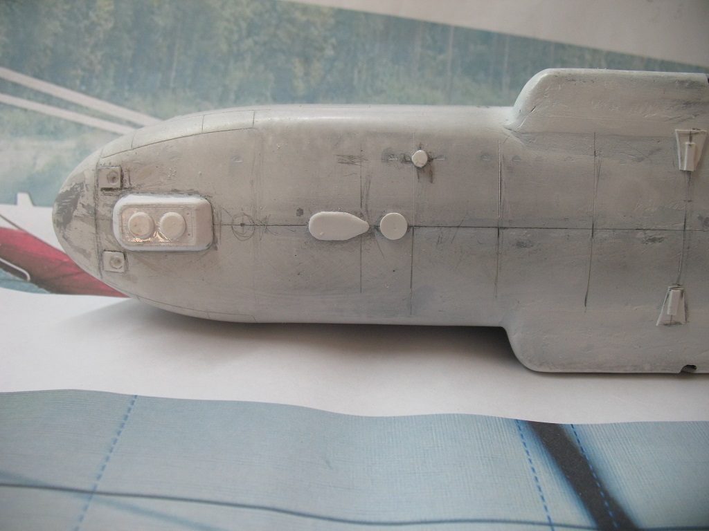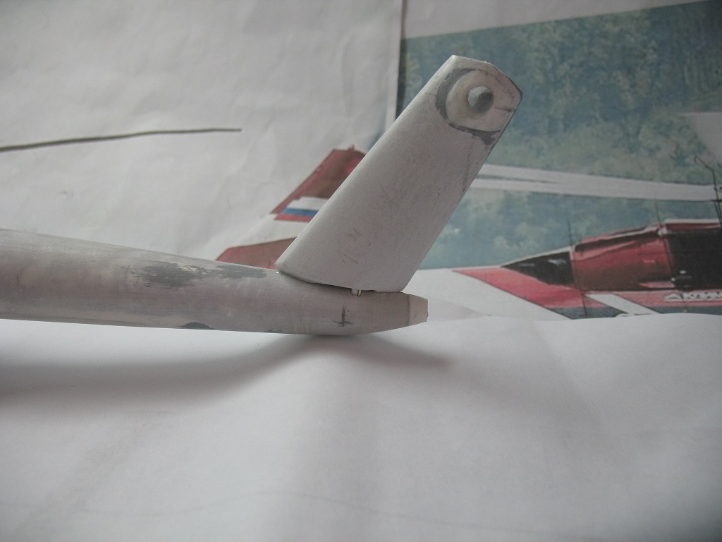 Установлен двигательный отсек на фюзеляж.Закреплен и слегка подшпаклеван.