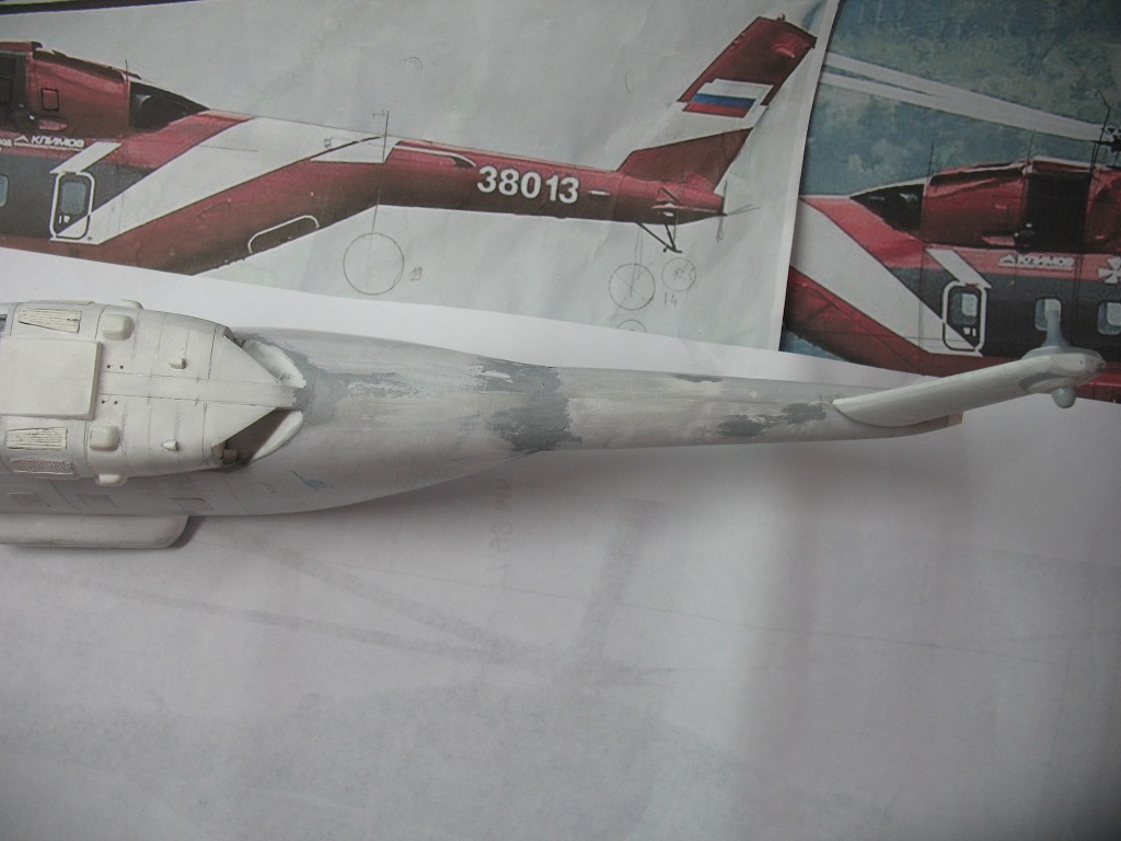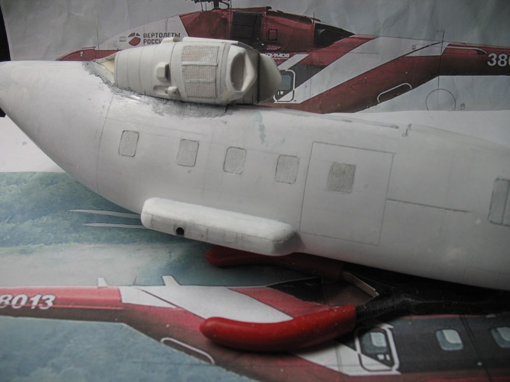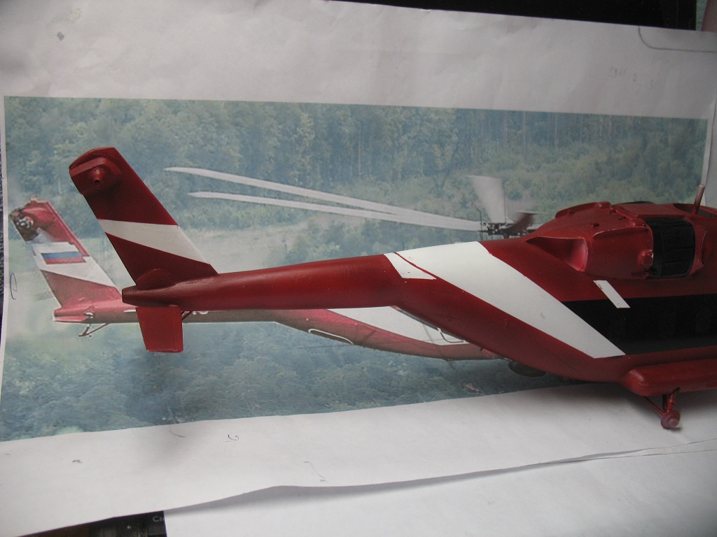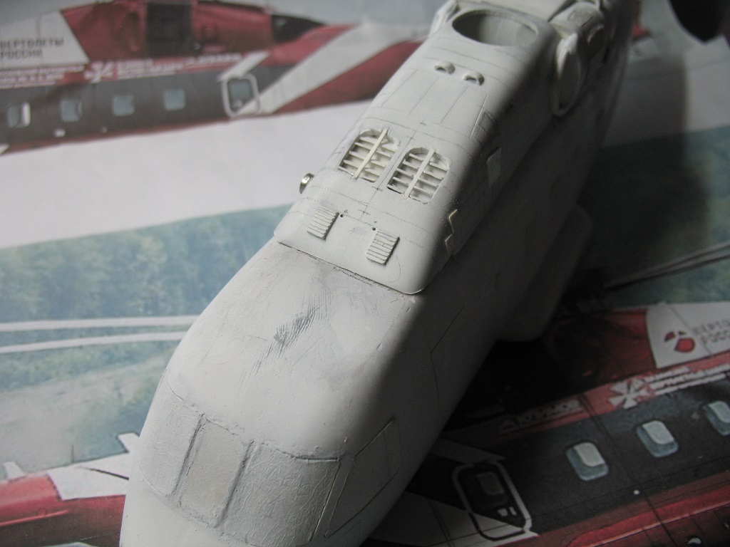 Установлены антенны,выхлопные устройства,стеклоочистители.Осталось установить АНО,проблесковые маяки,навесить лопасти НВ и РВ.Ну и немного постшейдинга для придания объема на белом фоне.
