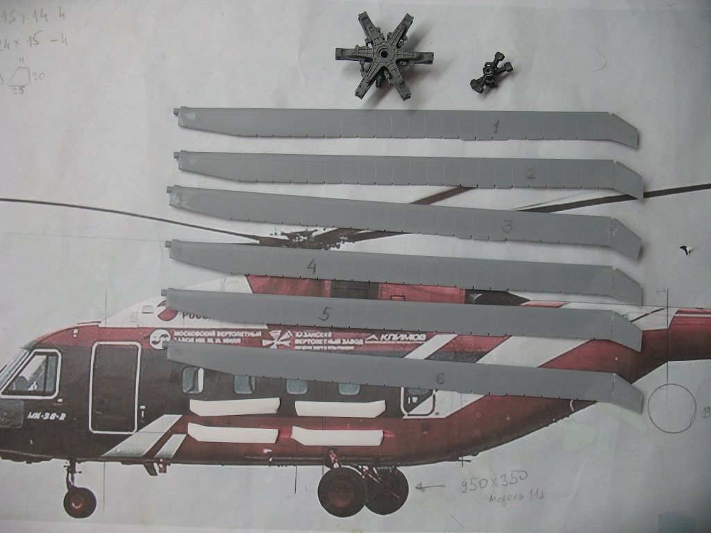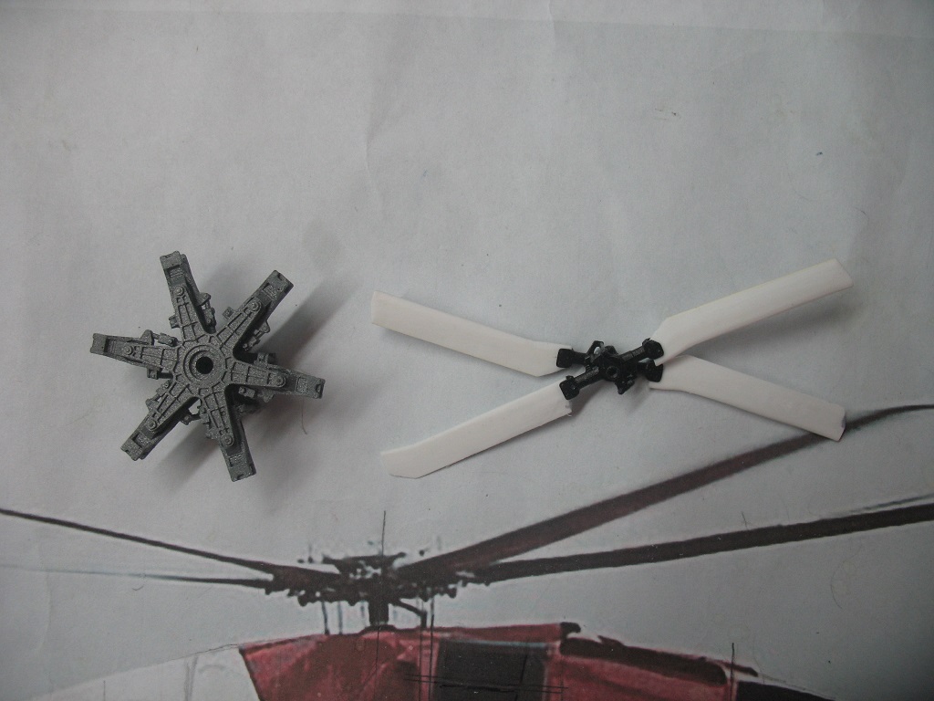 Подготовил лопасти НВ и РВ под покраску.Лопасти НВ(несущего винта) перетачивал из лопастей Ми-26 от Звезды.По хорде подошли идеально. Втулки печатные.