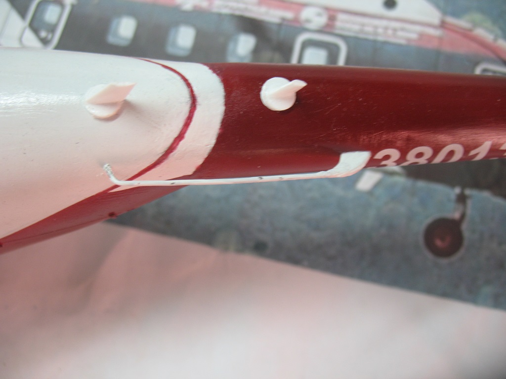 Установил фары от Эльф,поручневую антенну на хвостовую балку и фюзеляж(к сожалению не знаю её название и предназначение),хвостовой огонь ХС-39.