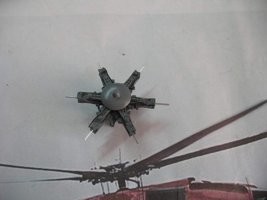 Протянул шланги жгутов ПОС к лопастям на втулке НВ.Изготовил и закрепил обтекатель на втулке сверху.Собрал воедино Рулевой винт.