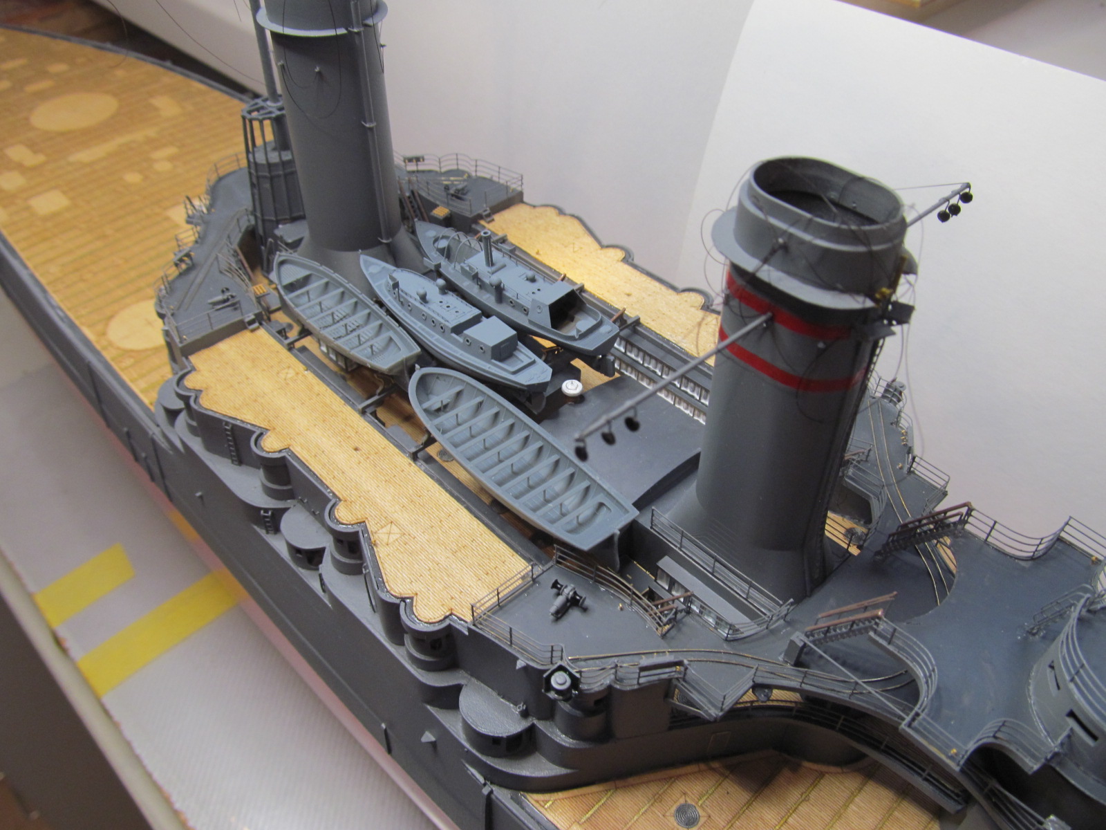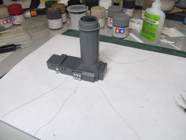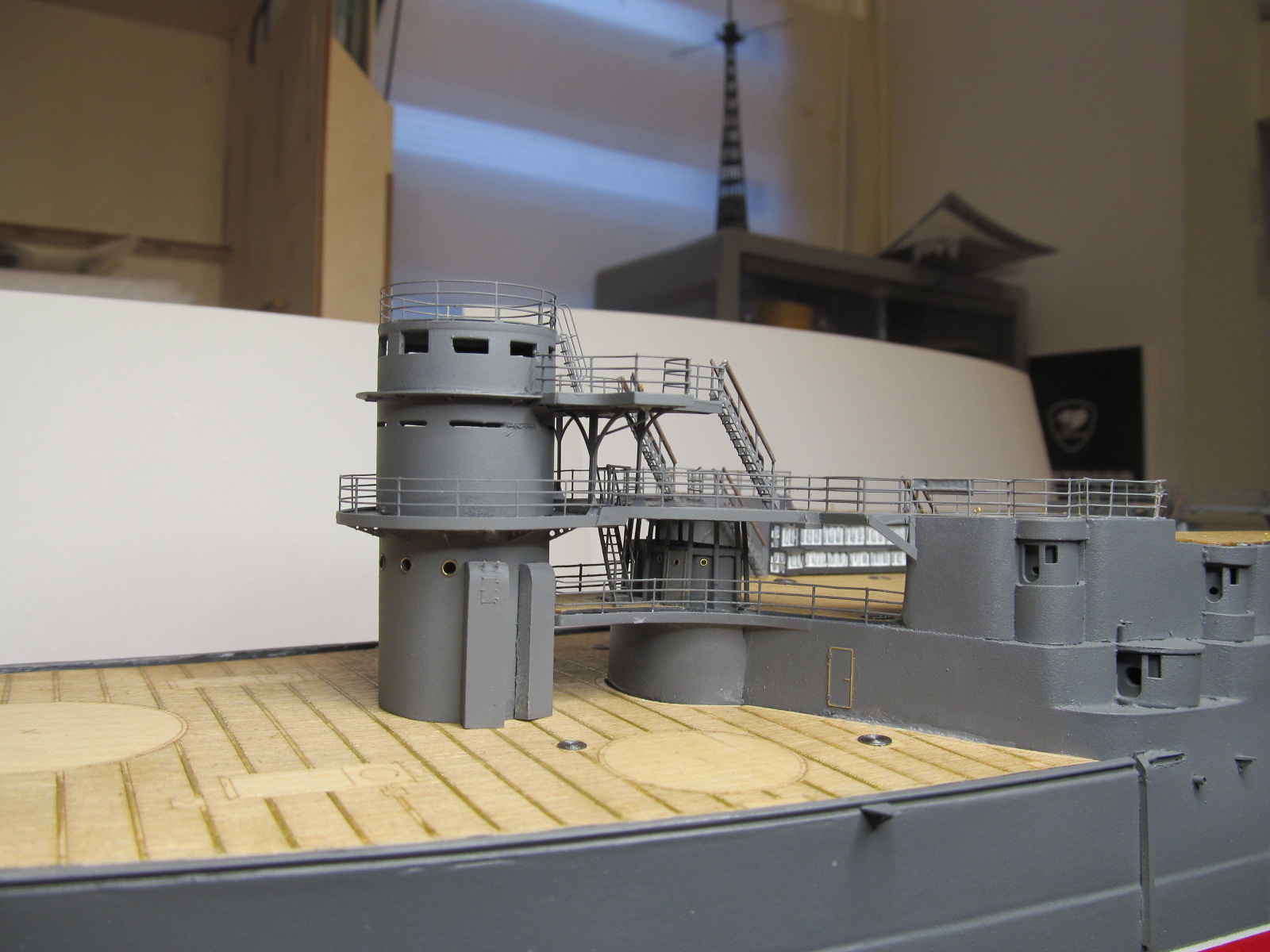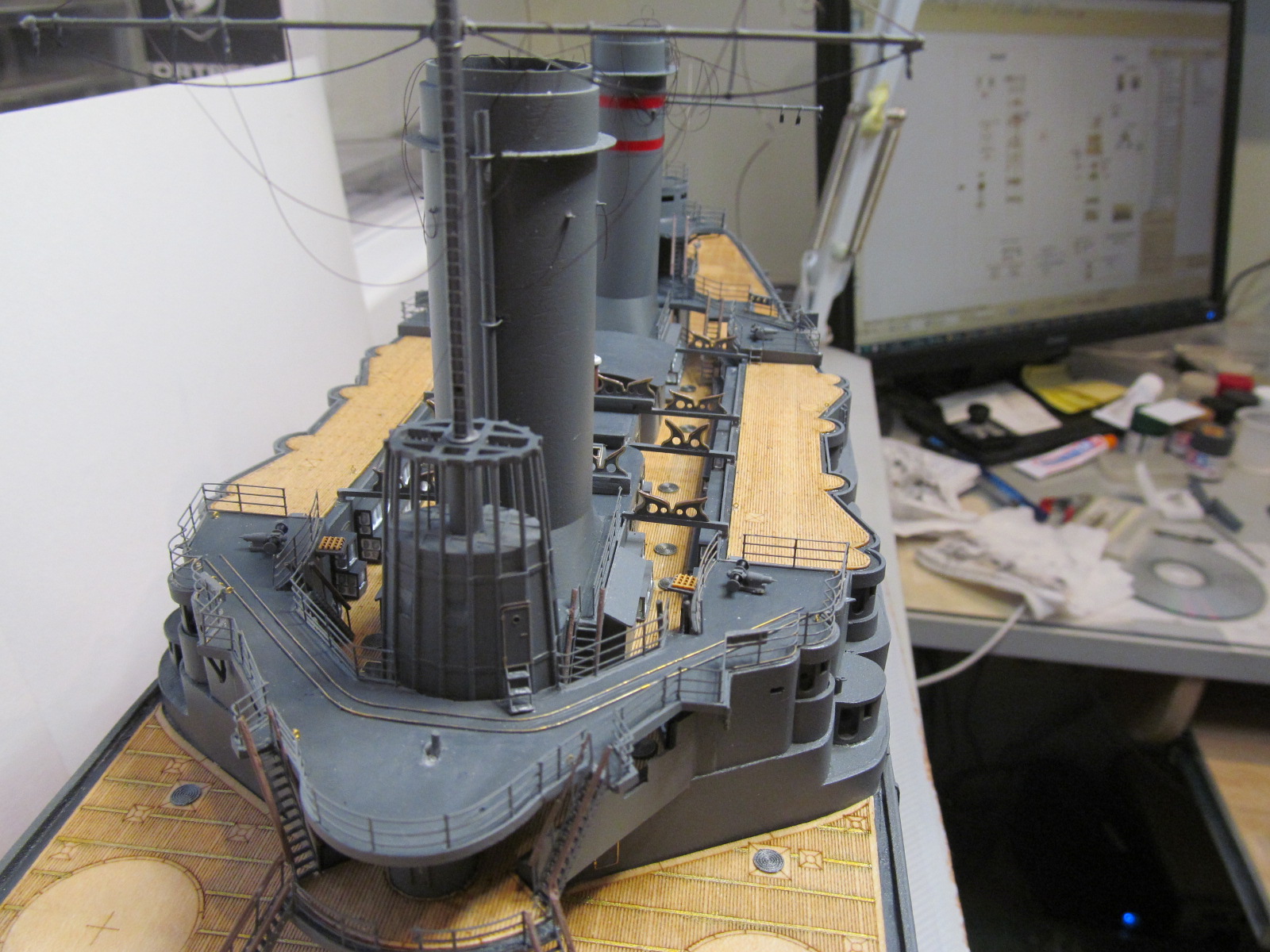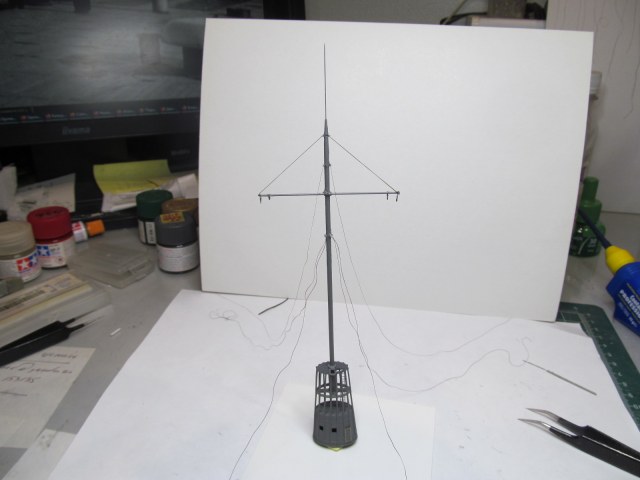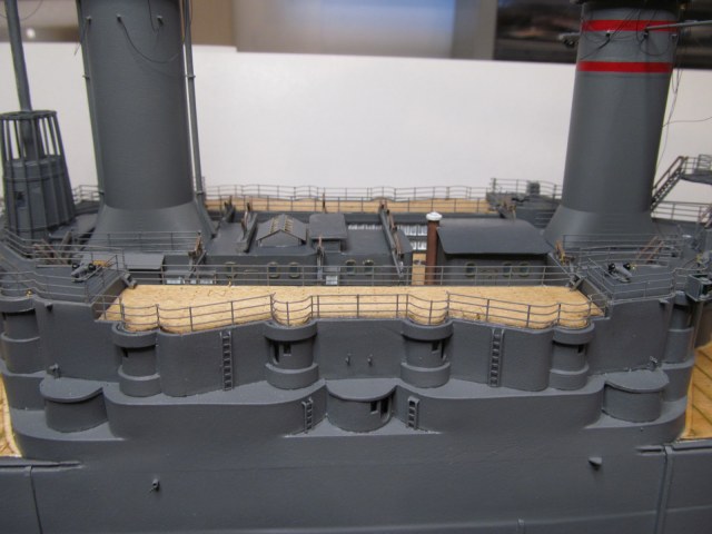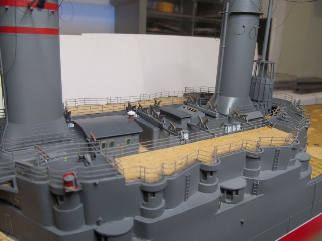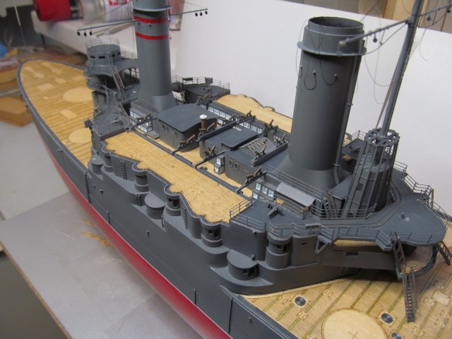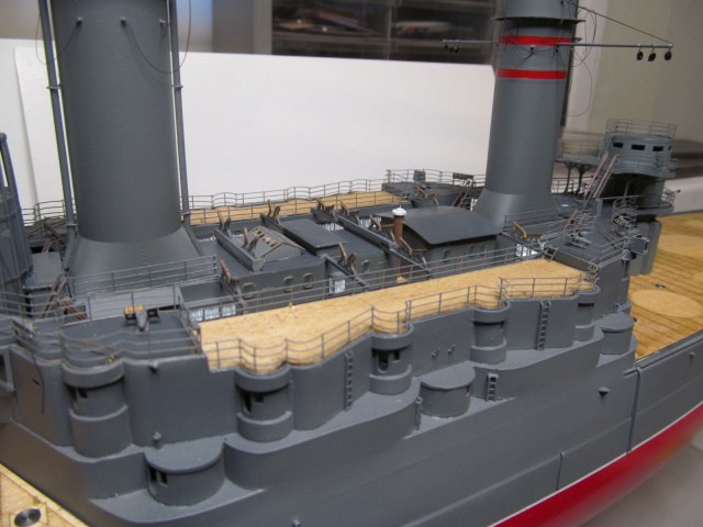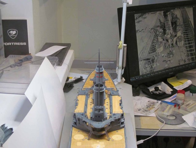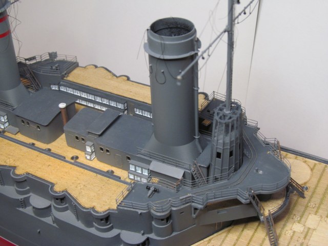 Всё это делал только по фотографиям (к сожалению, не очень качественным), т.к. на имеющихся у меня чертежах навигационные огни вообще в другом месте показаны, а выстрелы как факт на них отсутствуют....