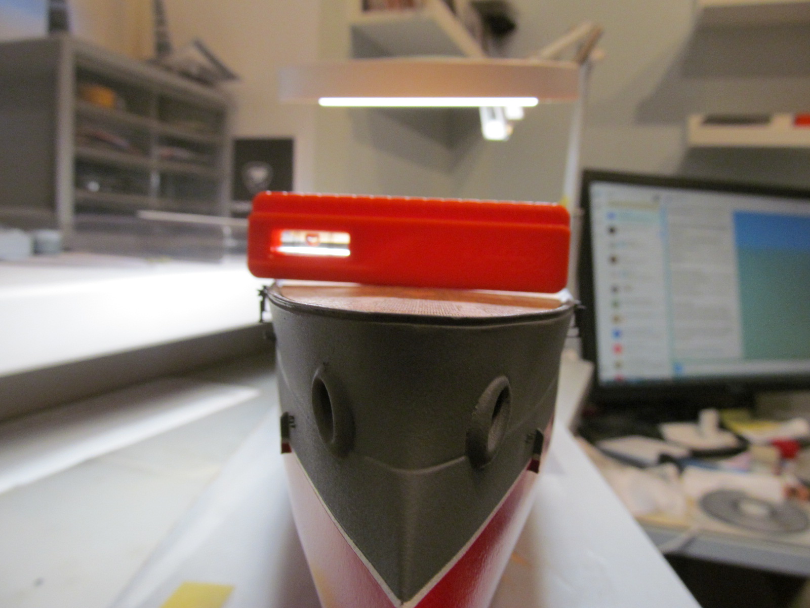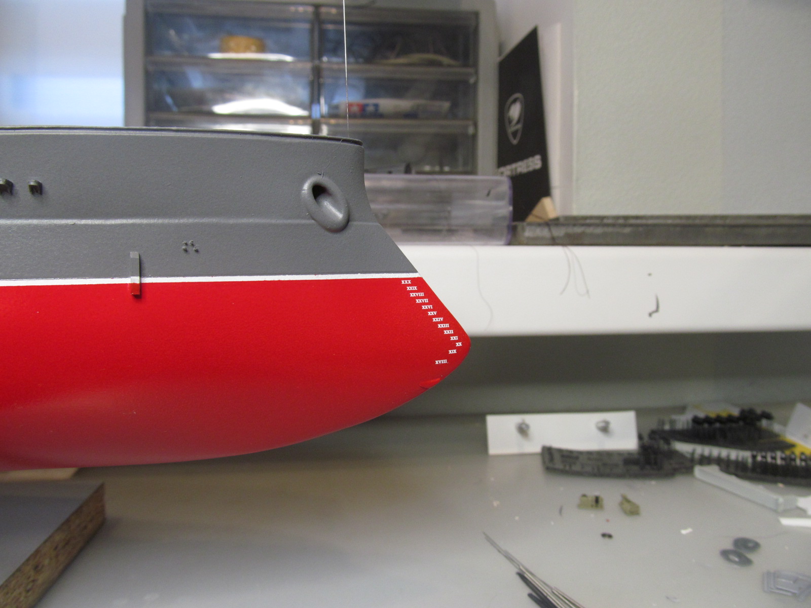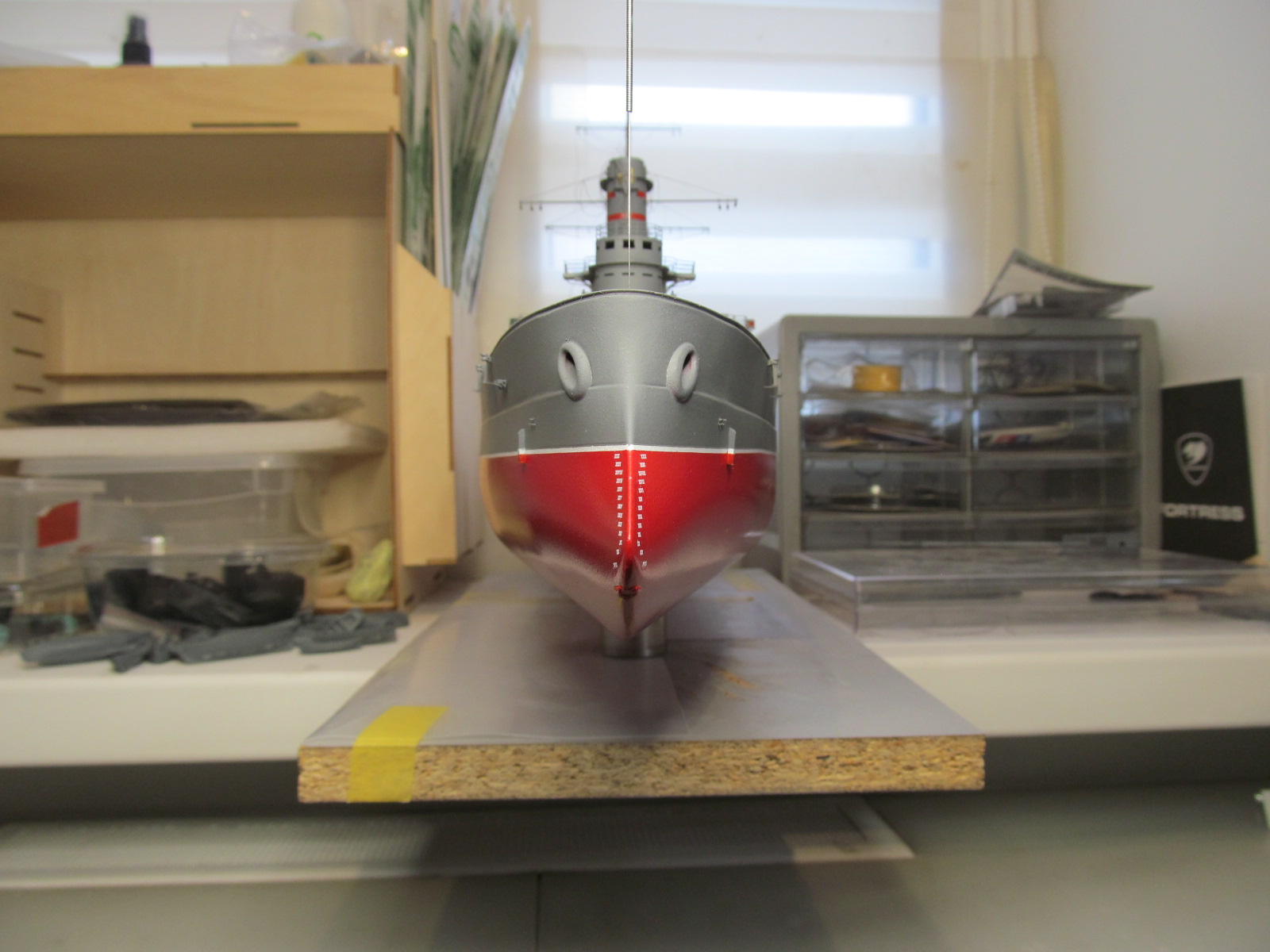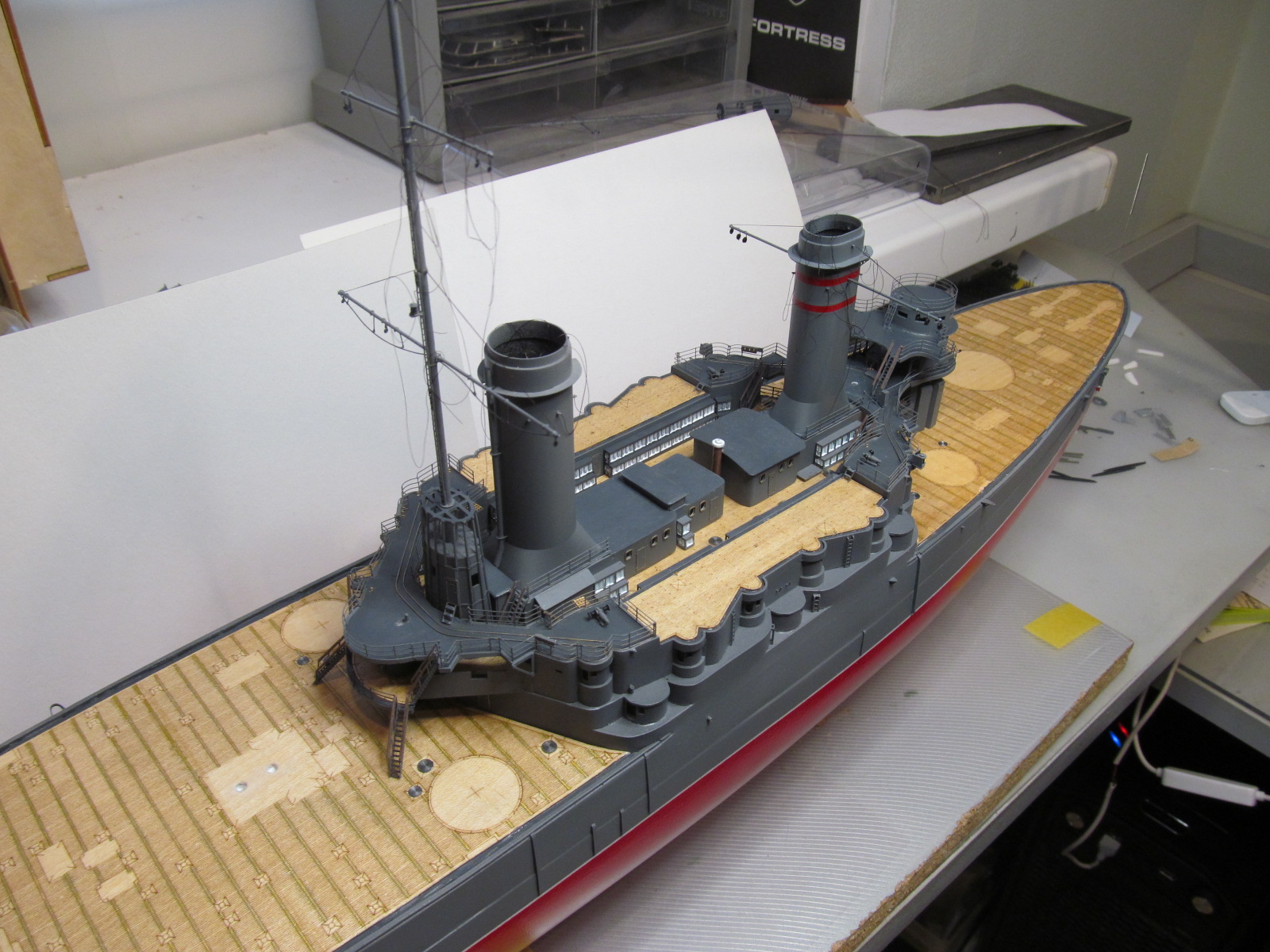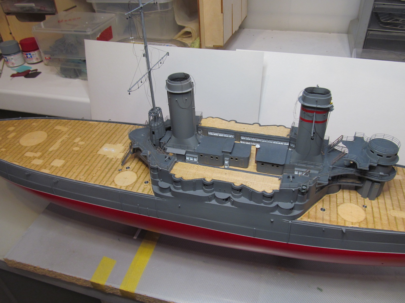 Всё это делал только по фотографиям (к сожалению, не очень качественным), т.к. на имеющихся у меня чертежах навигационные огни вообще в другом месте показаны, а выстрелы как факт на них отсутствуют....