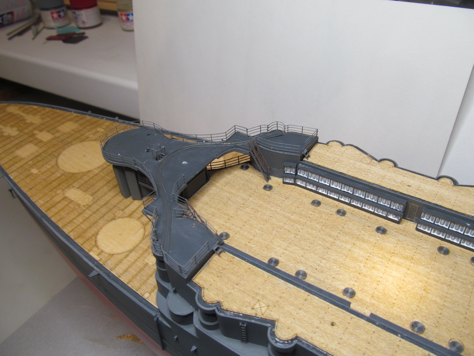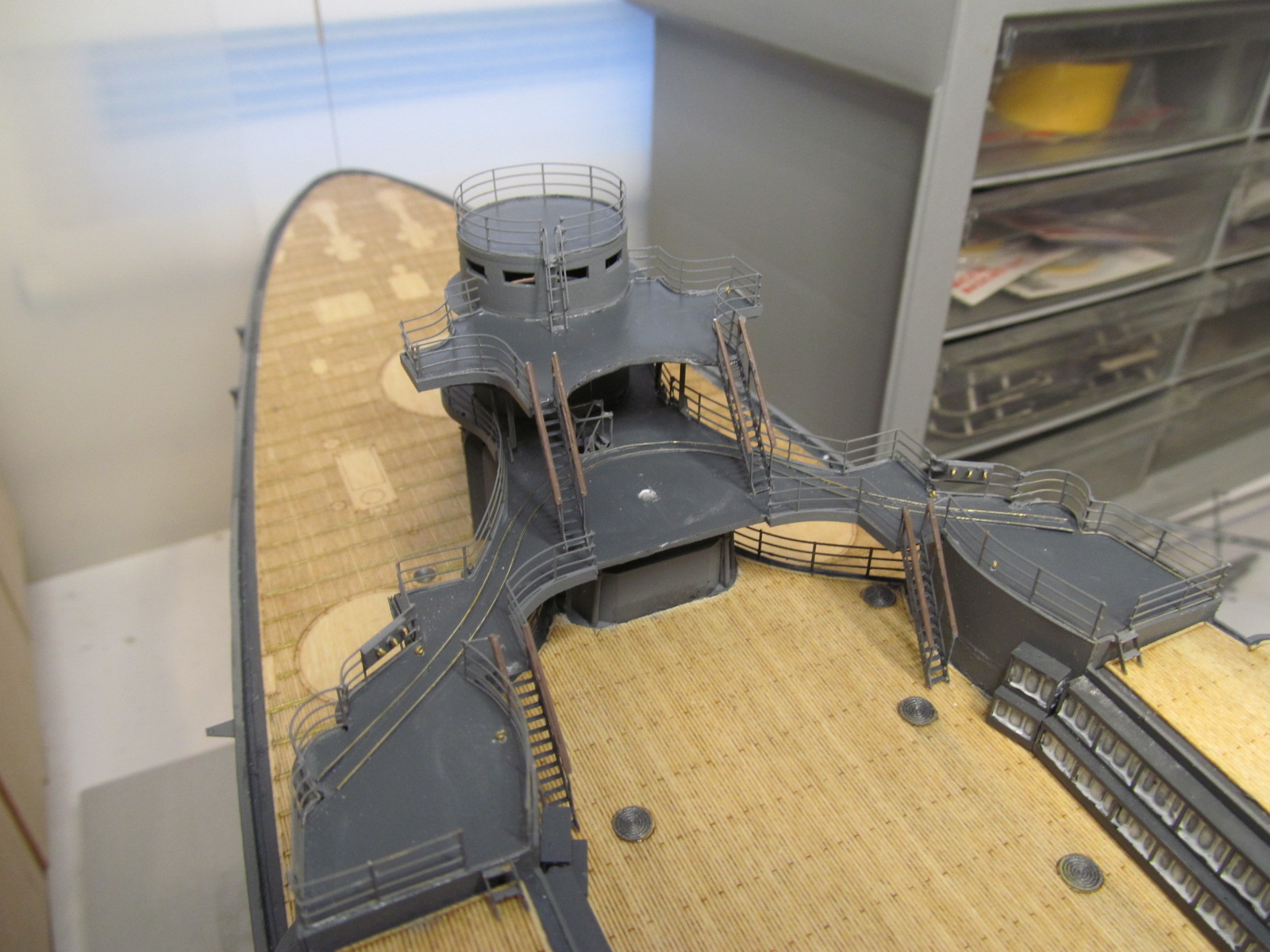 3. Ну, и пошёл верхний мостик со всеми своими трапами, леерными ограждениями и прочими прибамбасами.
