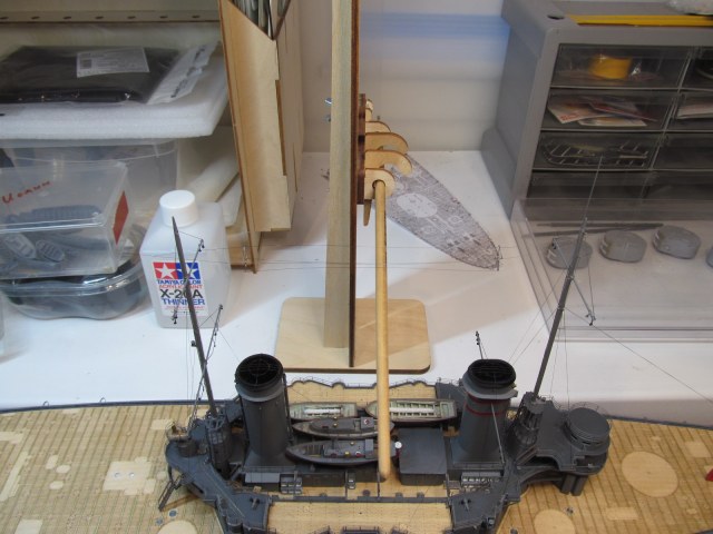 Грот-мачта встала на своё законное штатное место и обвязана.