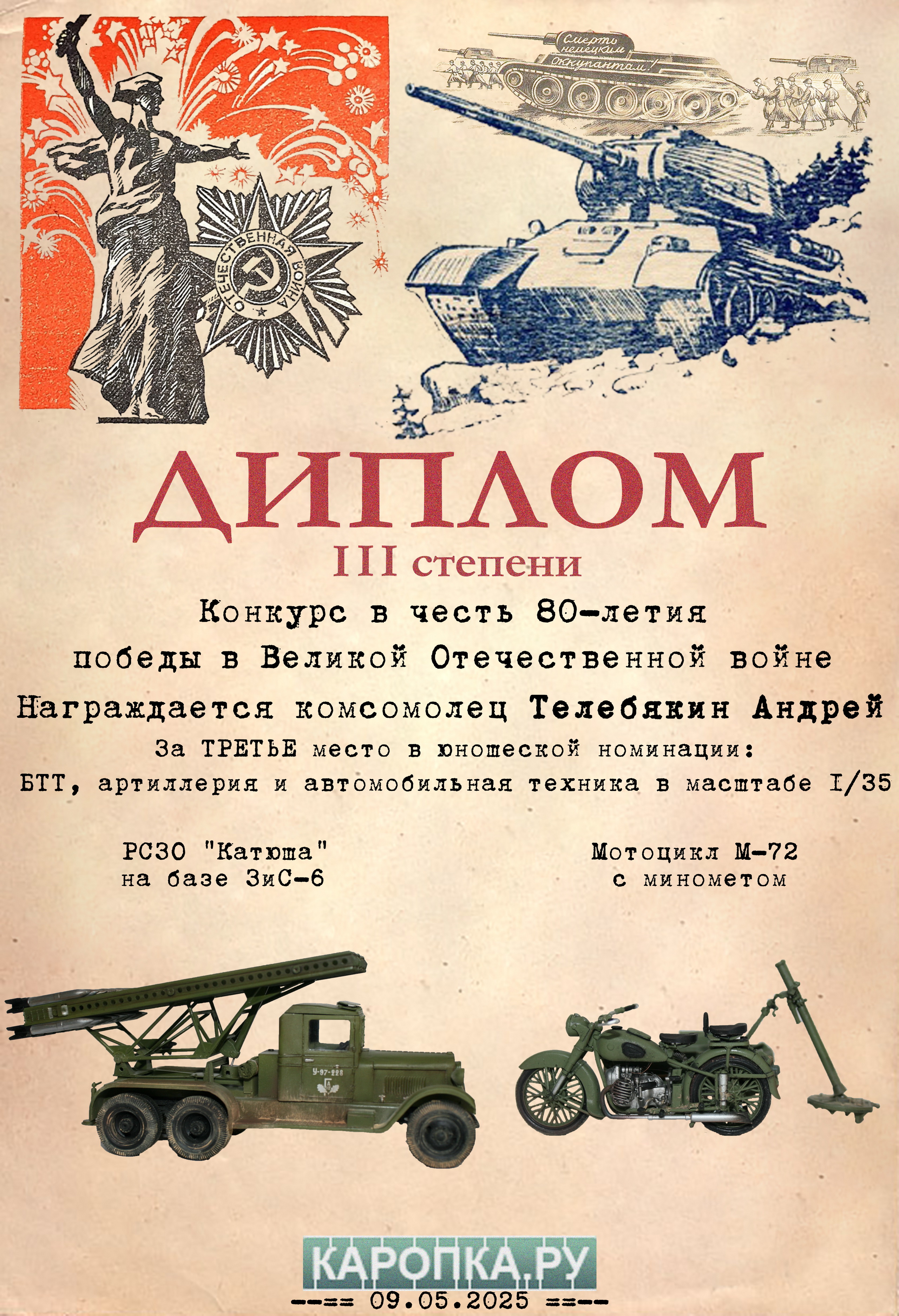 Предложенный мной вариант не подойдет для конкурса, где в одной номинации оцениваются и БТТ, и авиация, и другое вооружение/техника.