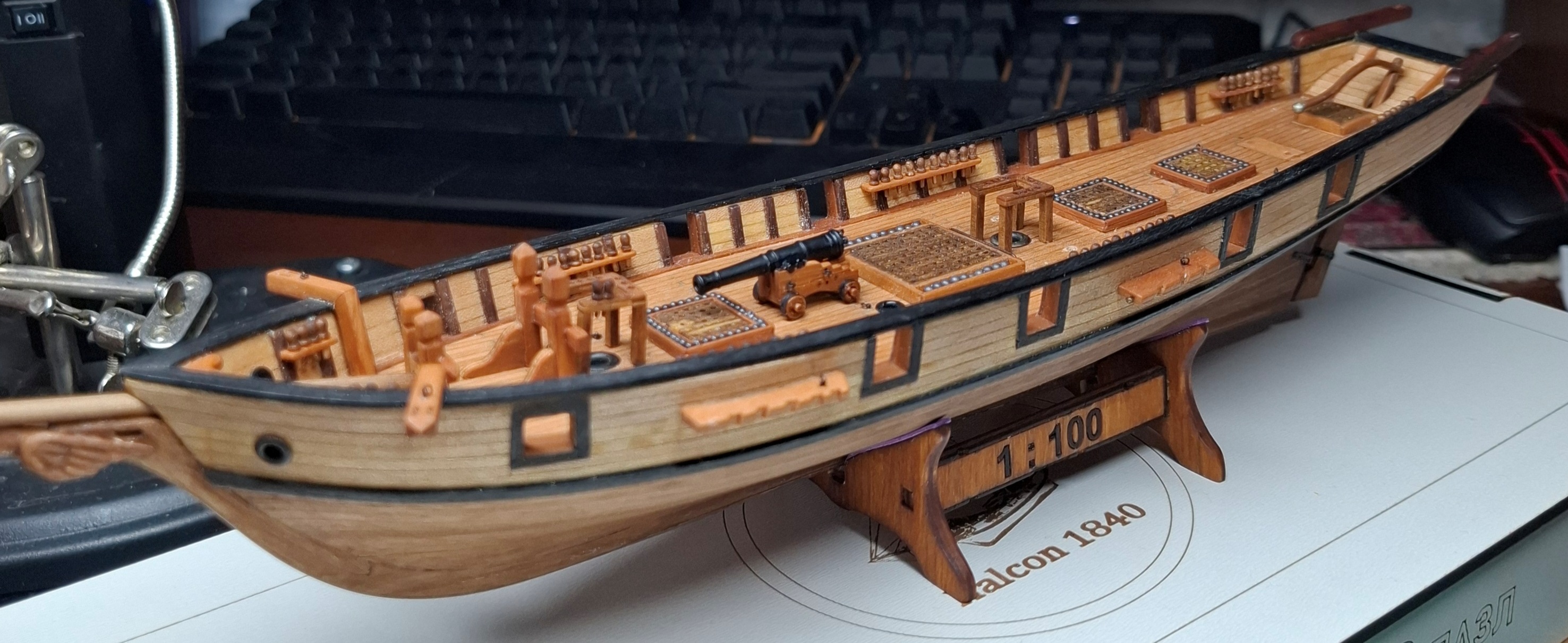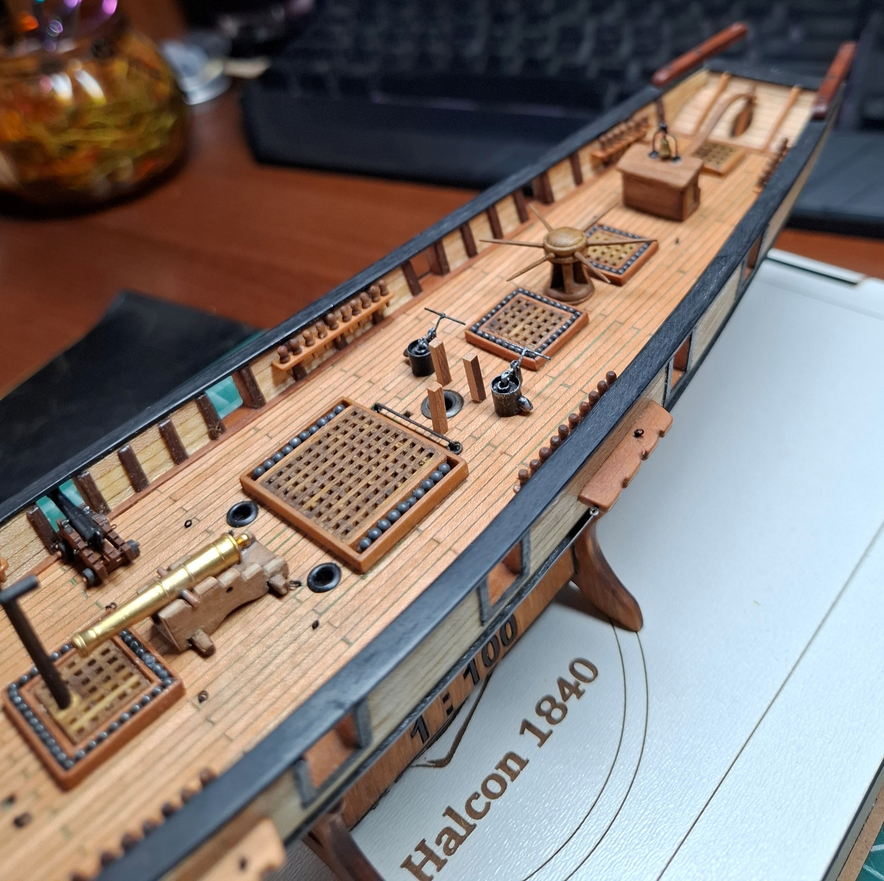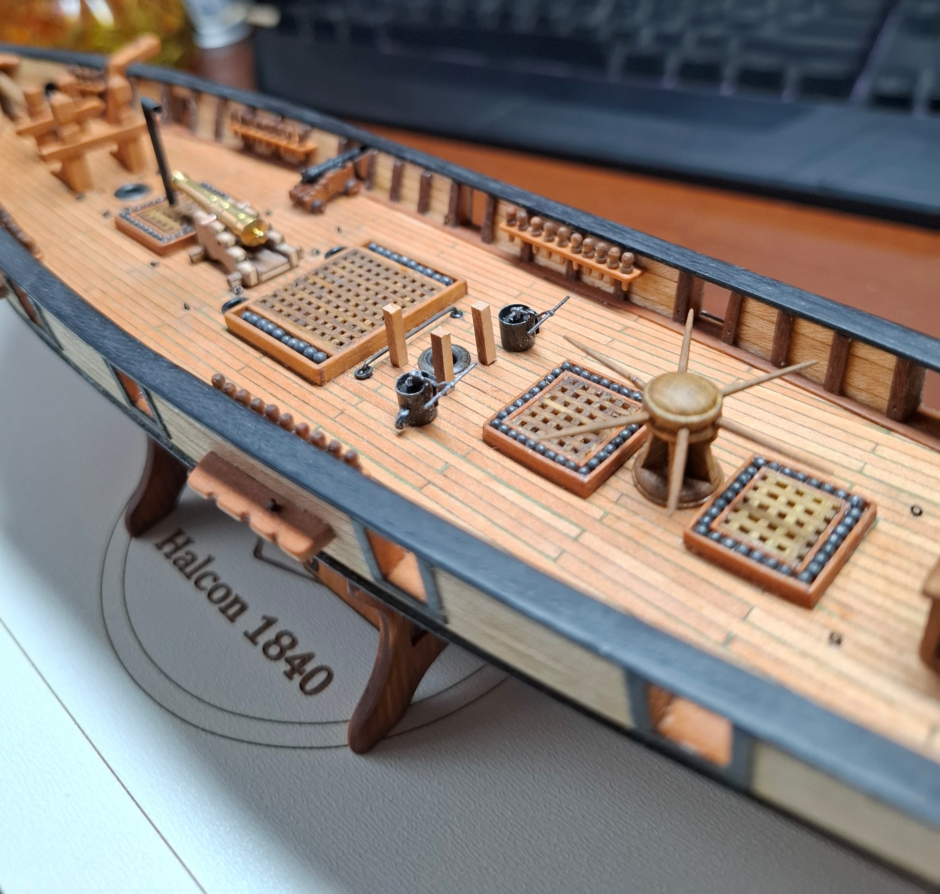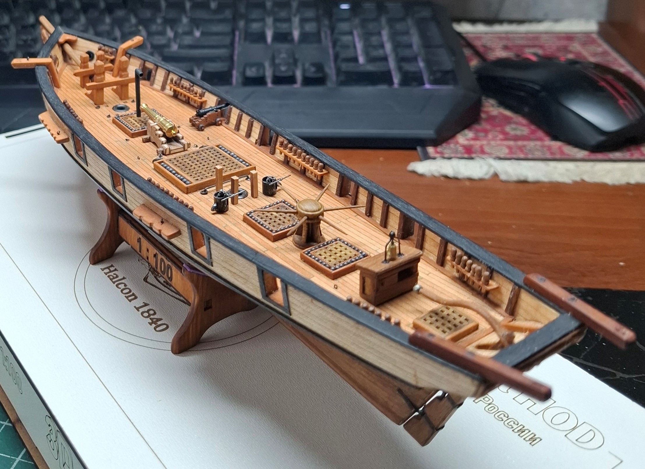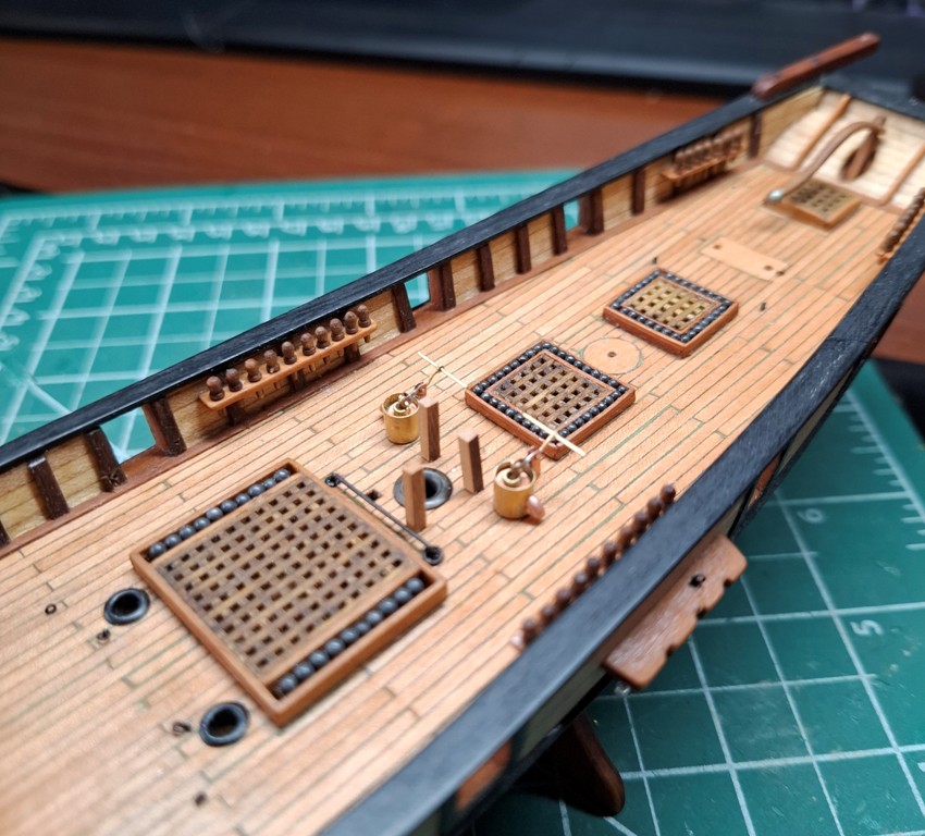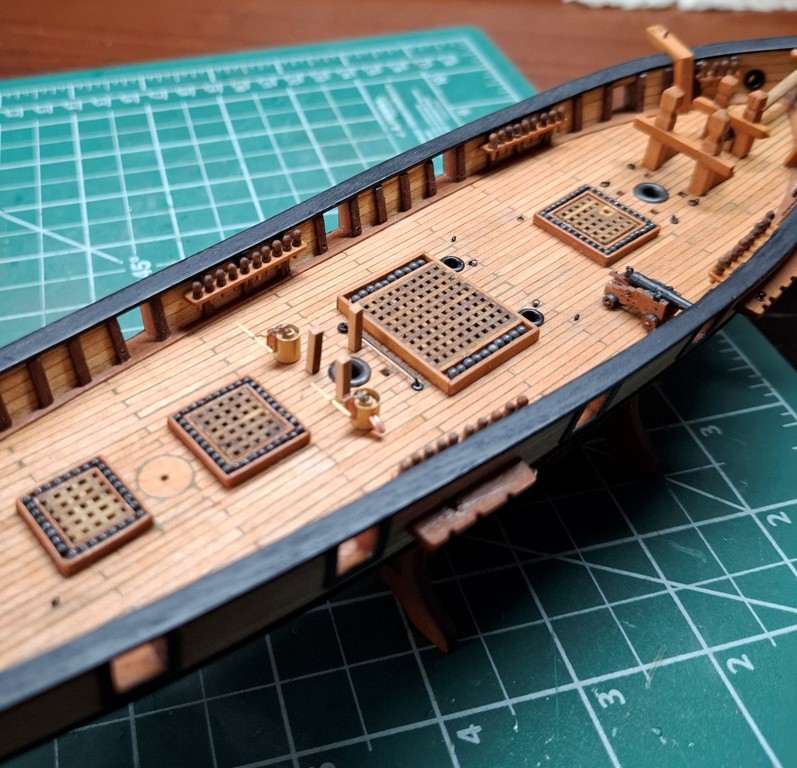 Ну и зачернил, подкрасил и прошелся "сухой кистью". Потихоньку наполняем палубу.