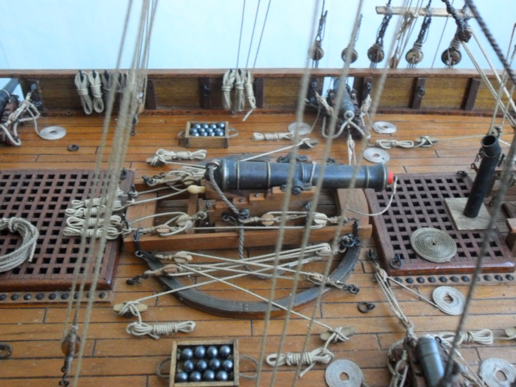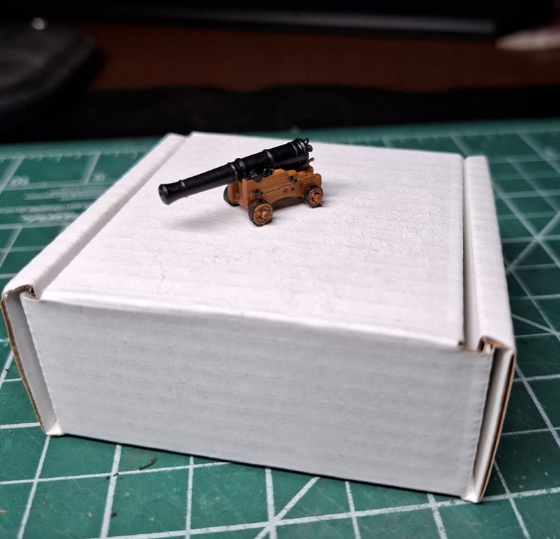Собрал другую пушку. Ствол чуть поменьше. Осталось сделать обвязку с блоками к палубе.