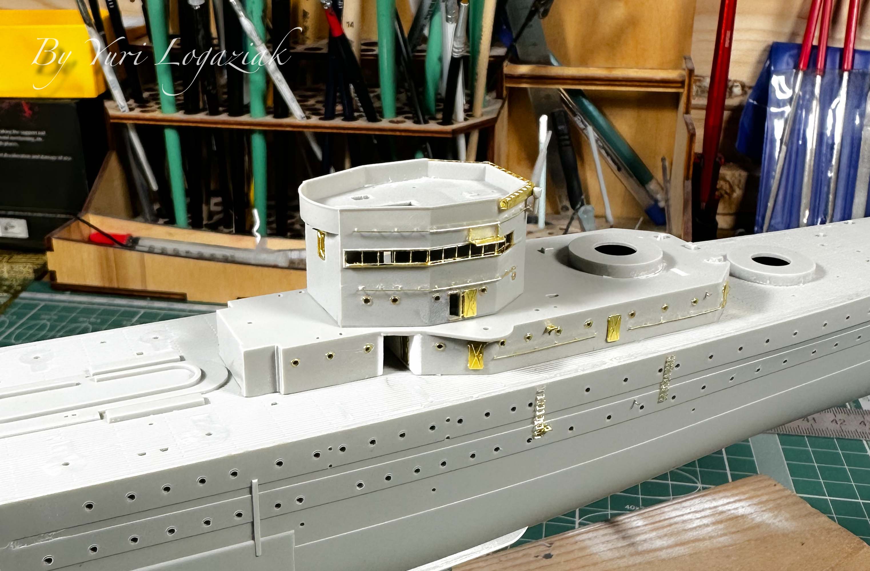 Срезал пластиковые ребра жесткости на барбетах, заменю на травление.