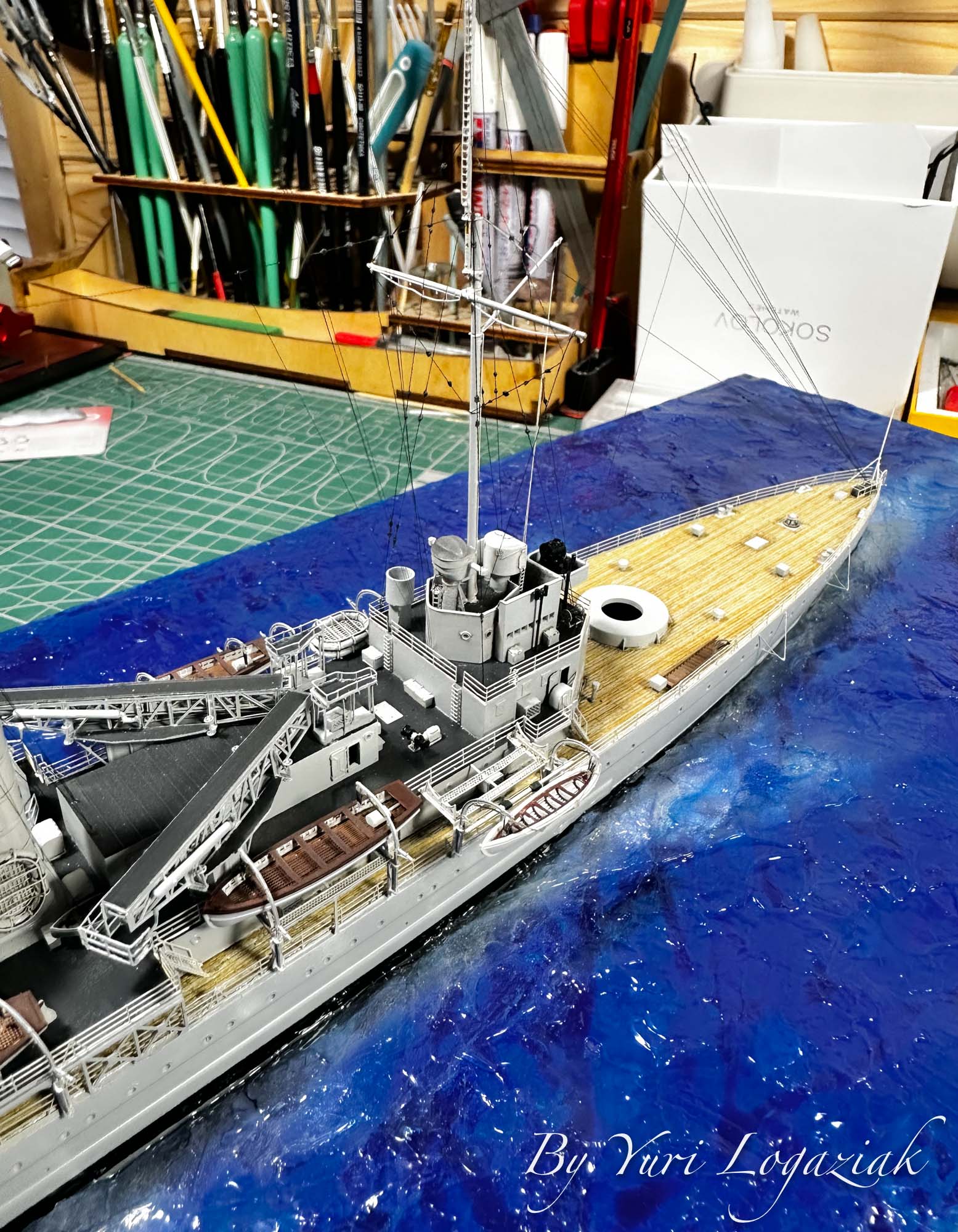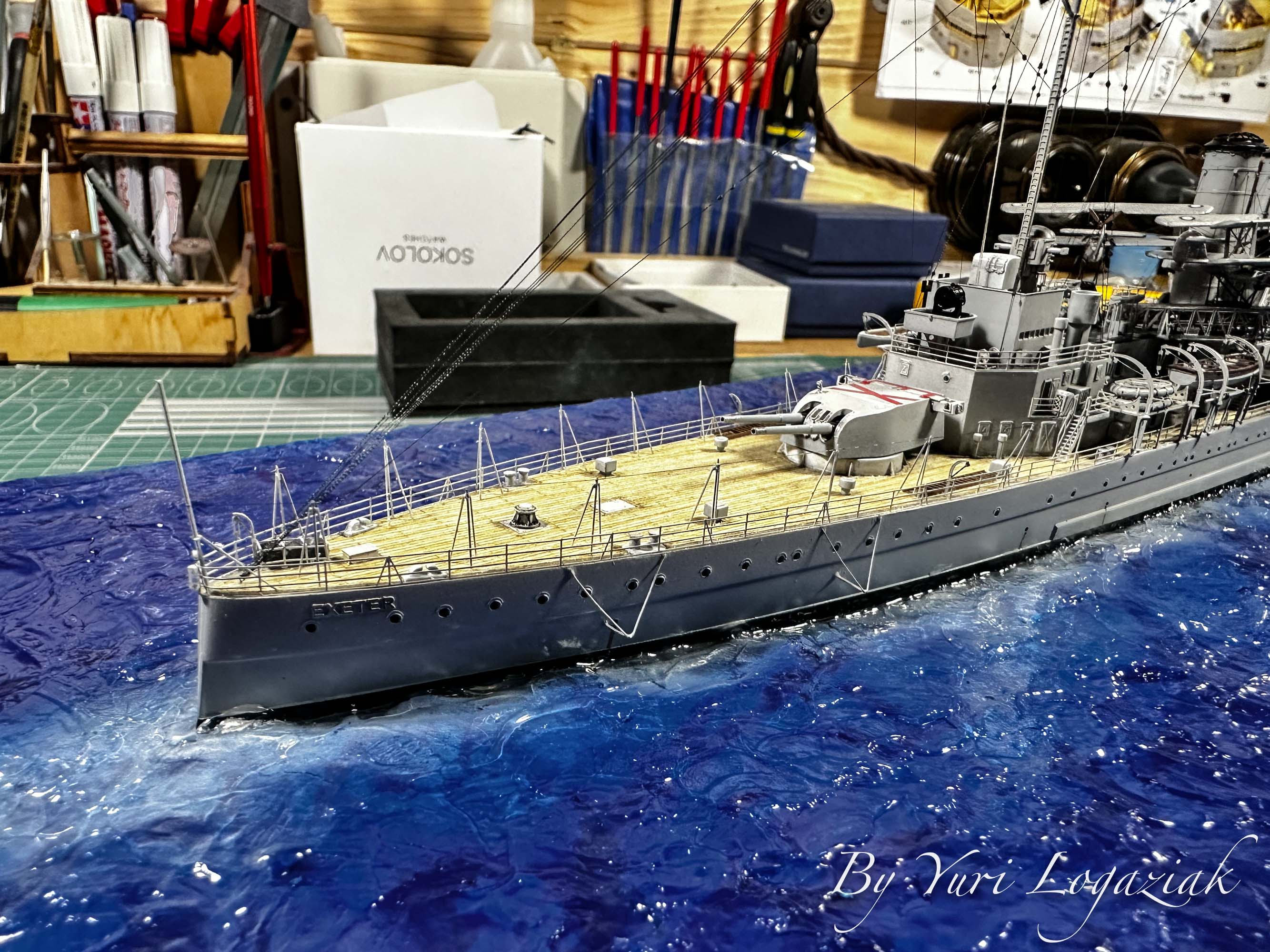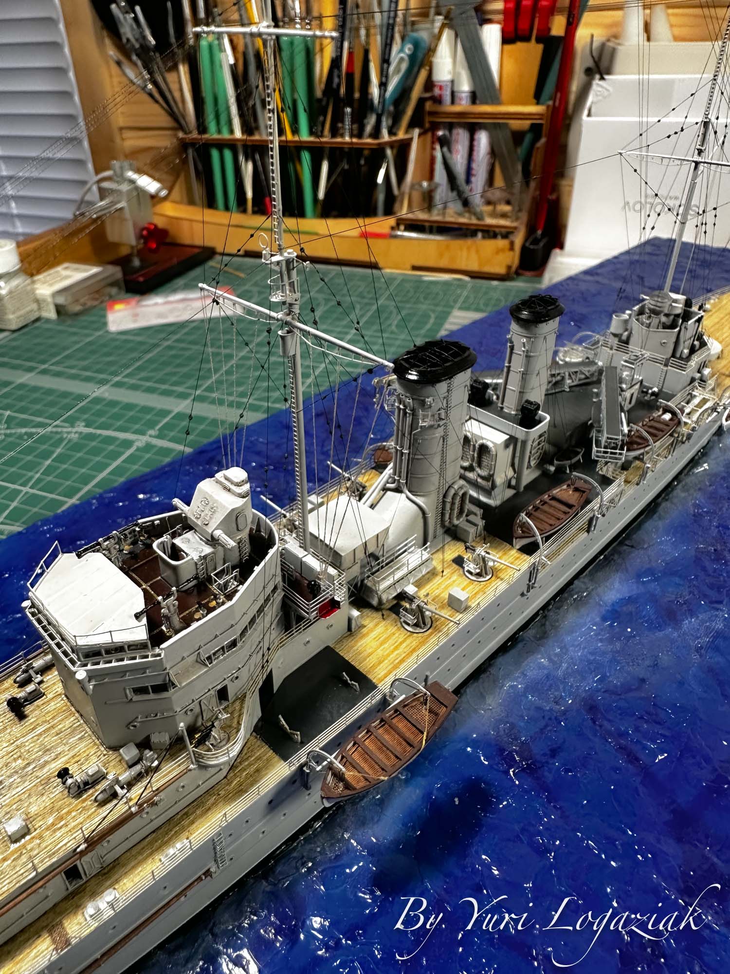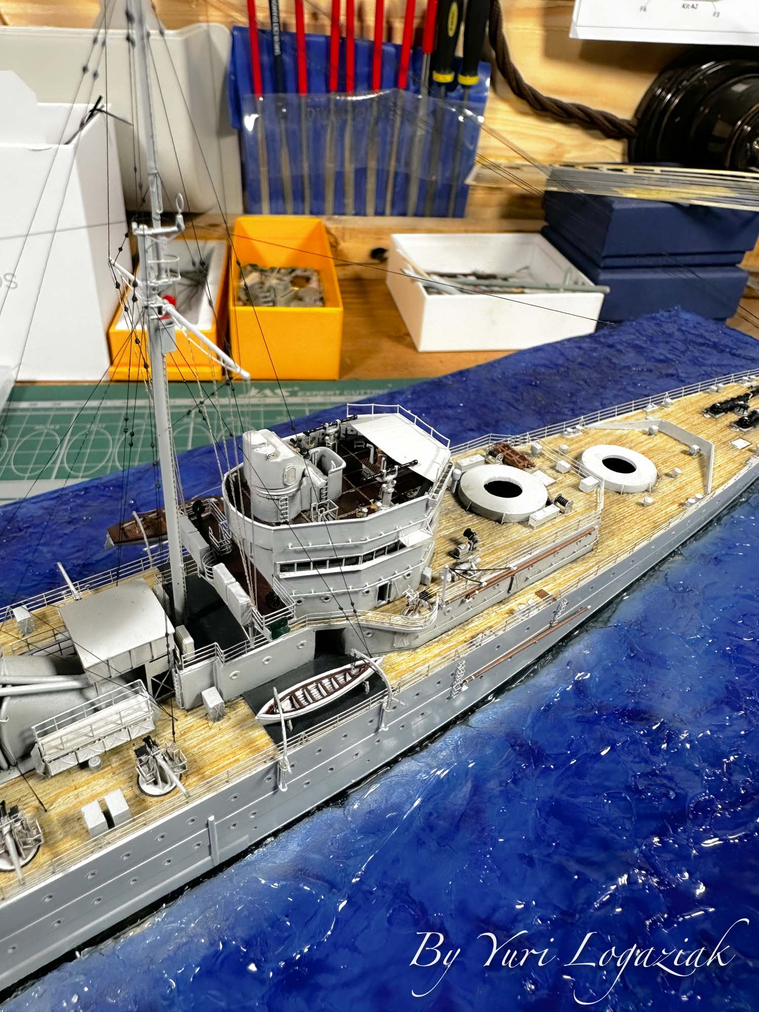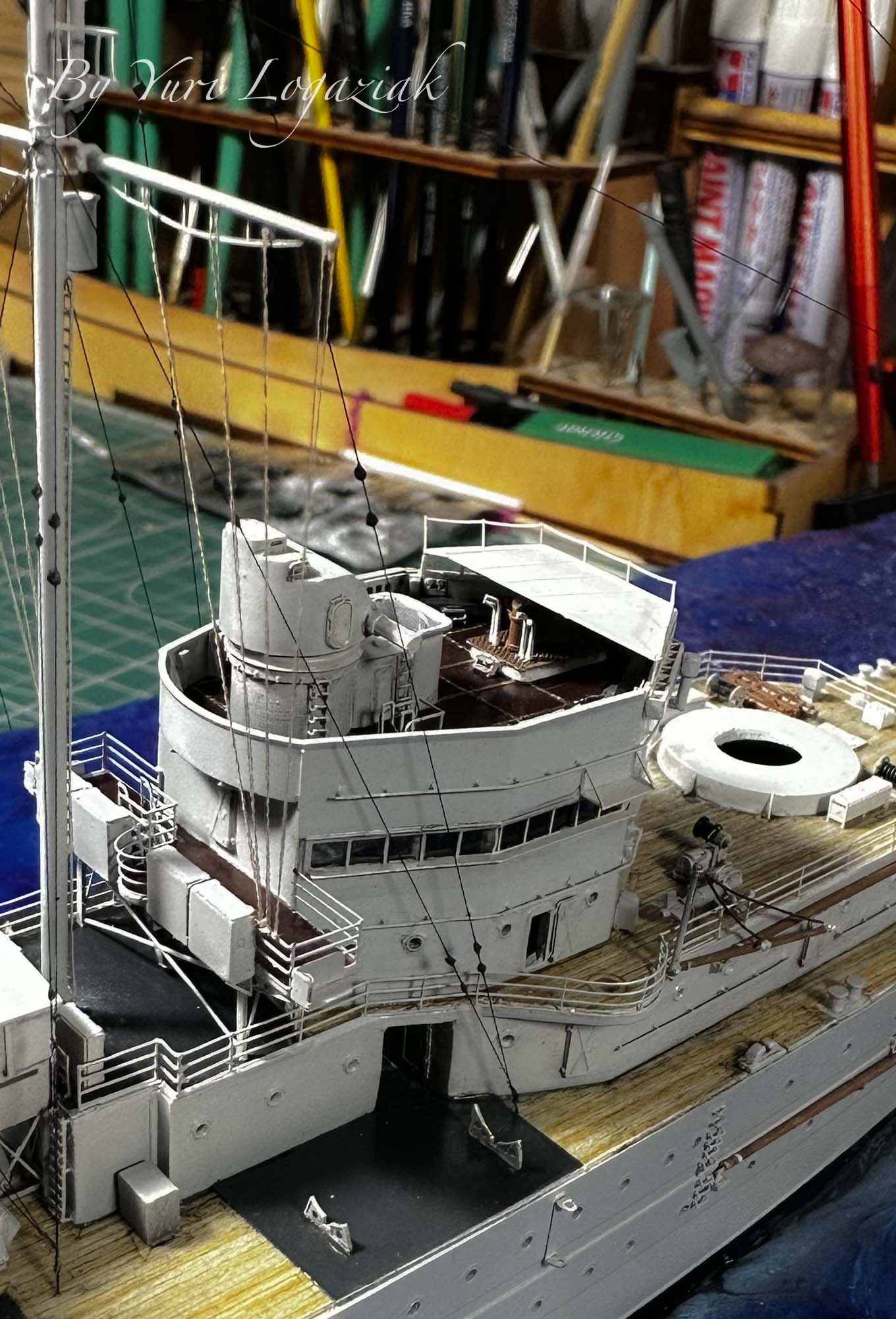 Натянул такелаж до установки вооружения, плавстредств. Поймал себя на мысли: с такелажем нужно вовремя остановиться... Все время находил необходимым что-то еще натянуть... Добавить...
