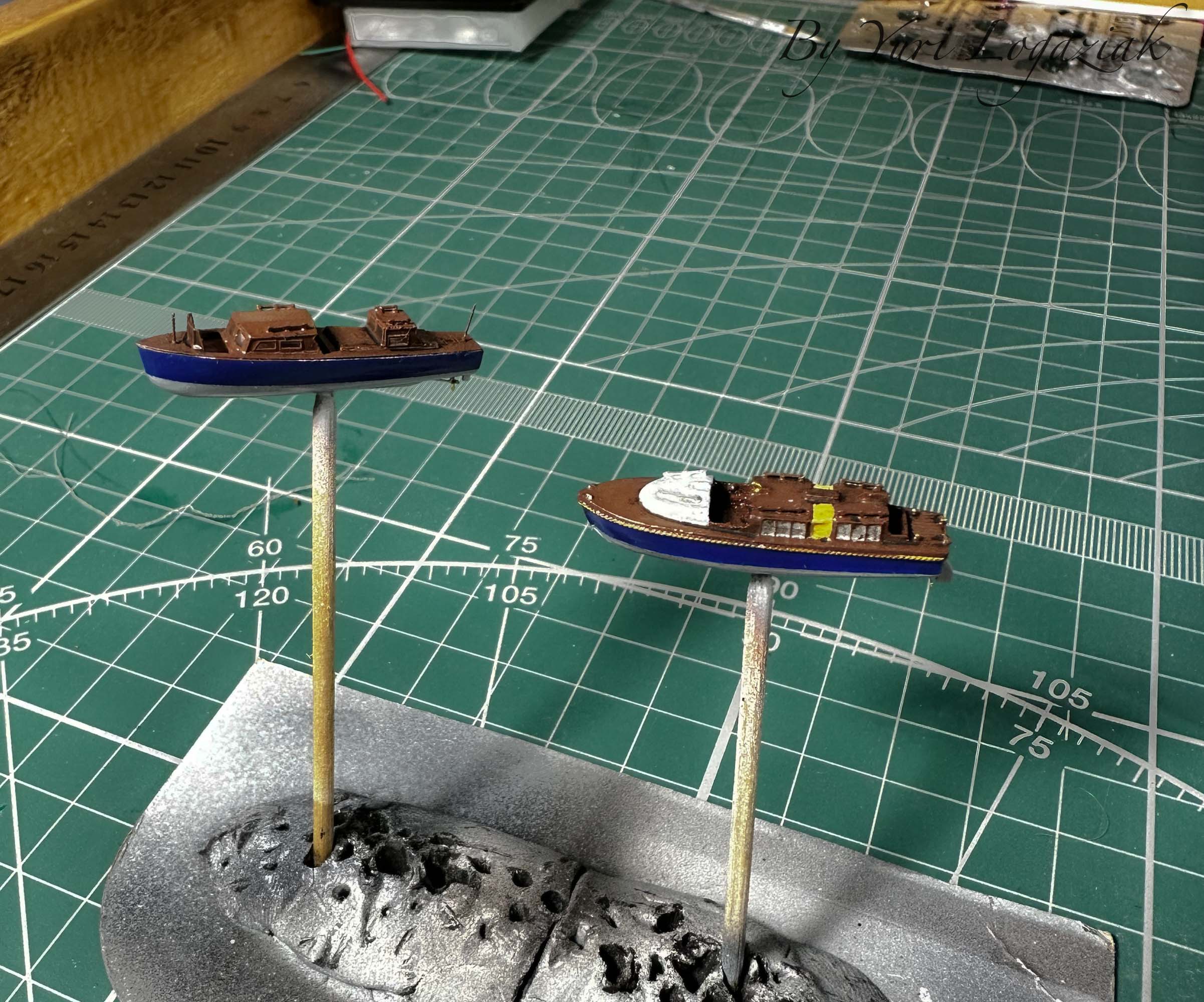 Слева из набора VF, правильный такой 25 футовый катер, слева моя попытка изобразить 35 футовый Адмиральский катер (делал из китайского 35 футового, не очень понятно чего-то, напечатанного на 3д принтере.)