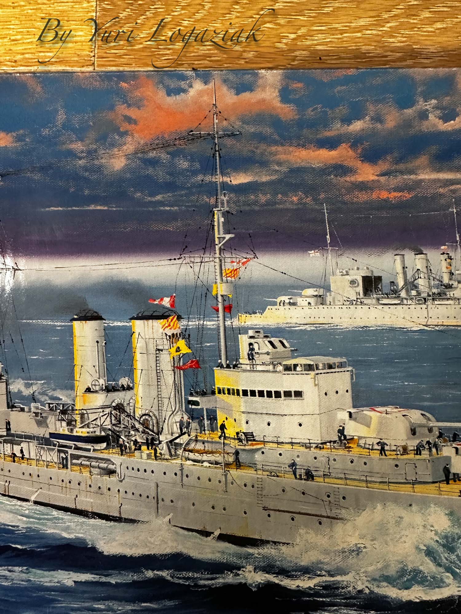 А волны могут быть какие угодно, как задумаешь диораму... У меня есть идея сделать какой нибудь эсминец, что то небольшое в совсем штормовом море, где волны больше корабля...