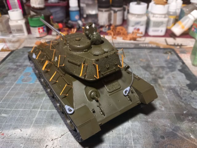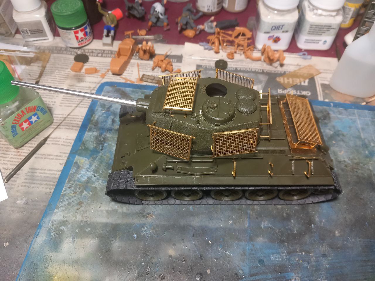 Первый вопрос. В основном тем, кто собирал технику с экранами. Понятно, что при наличии экранов толком покрасить сам танк будет проблематично, как и сделать на нем эффекты. В связи с этим экраны надо будет устанавливать уже на готовый танк.