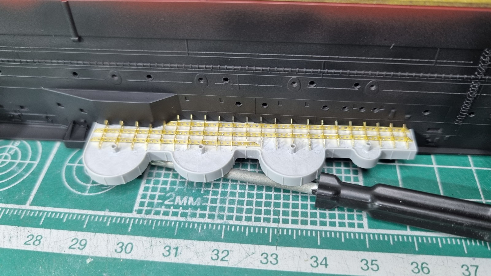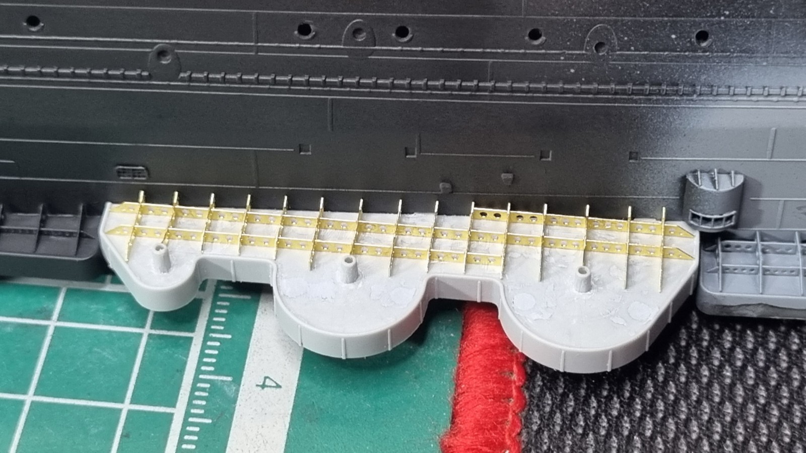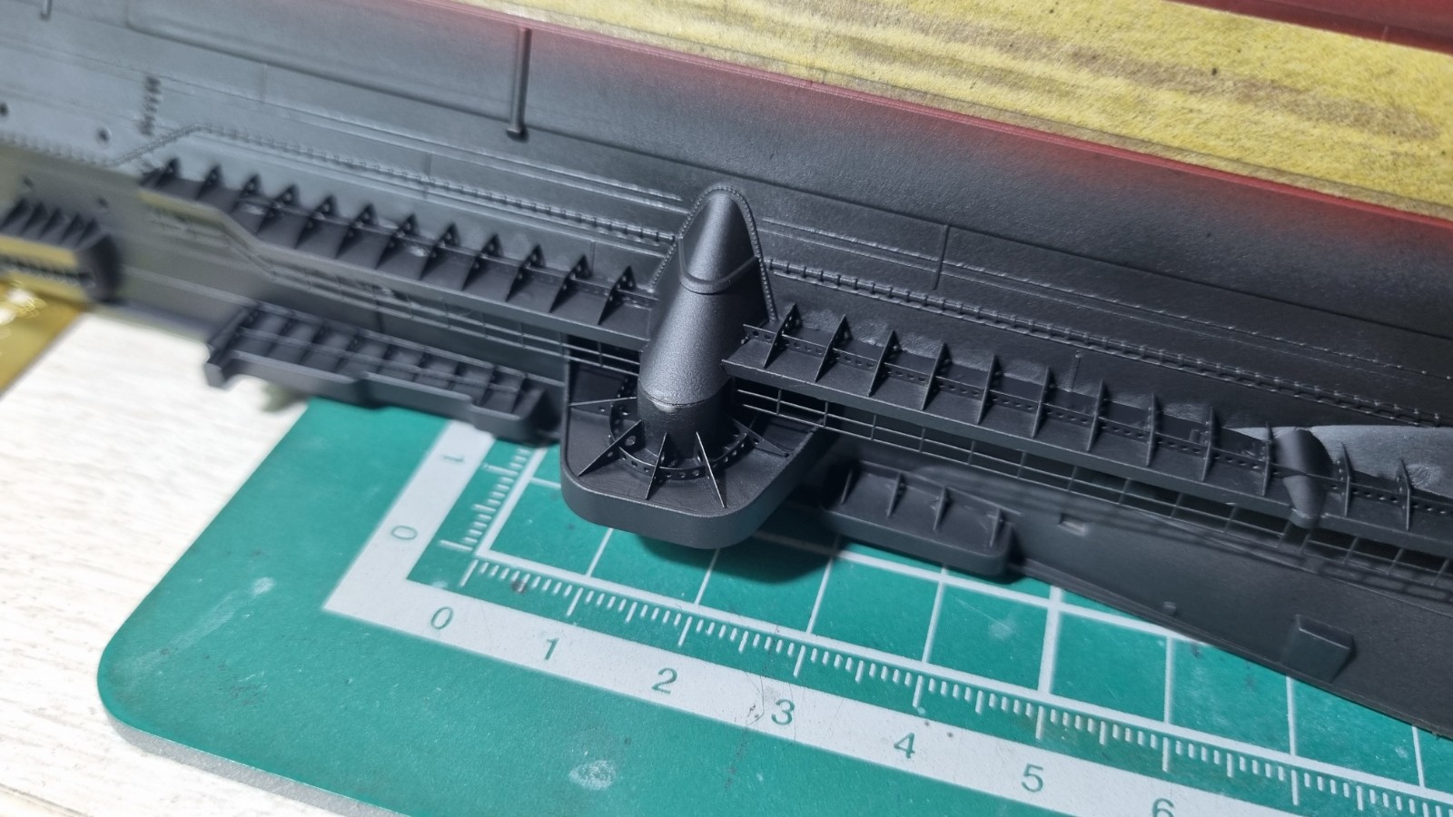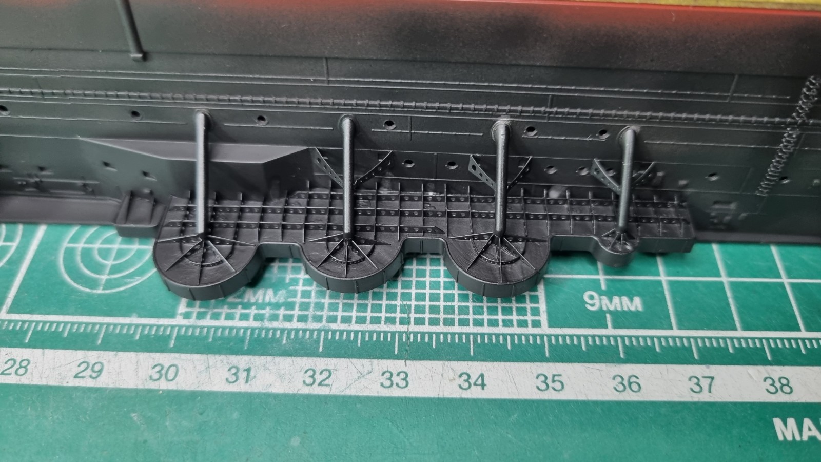 И так. Спонсоны под крупнокалиберные зенитки установлены. Дальше начинаются самые сложные спонсоны под строенные зенитки Тип 96.