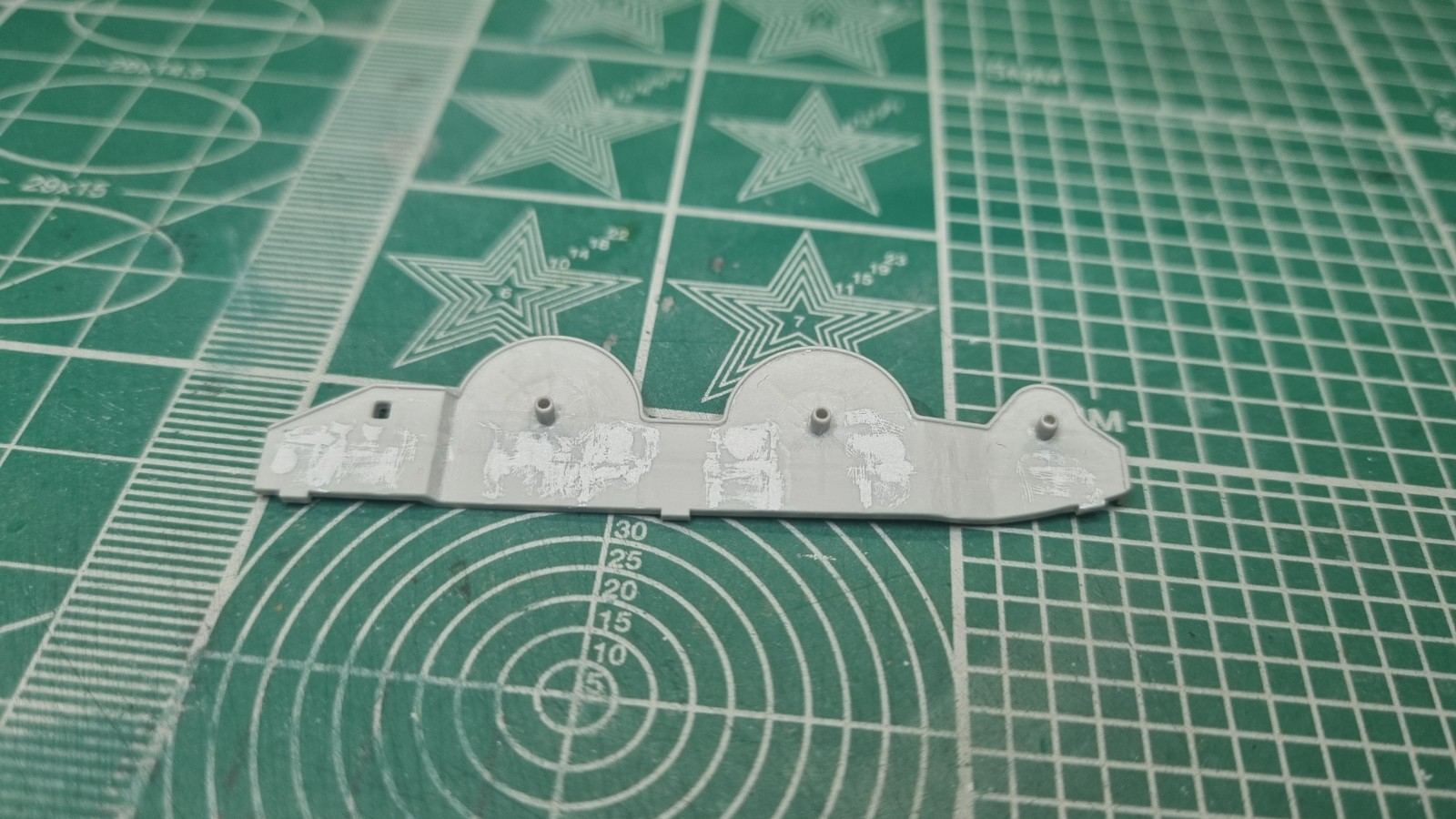 Немного проблемный спонсон в плане набора. Он не ровный, а с перепадом уровня. Сейчас вытащу корпус и буду монтировать основной набор на пластик.