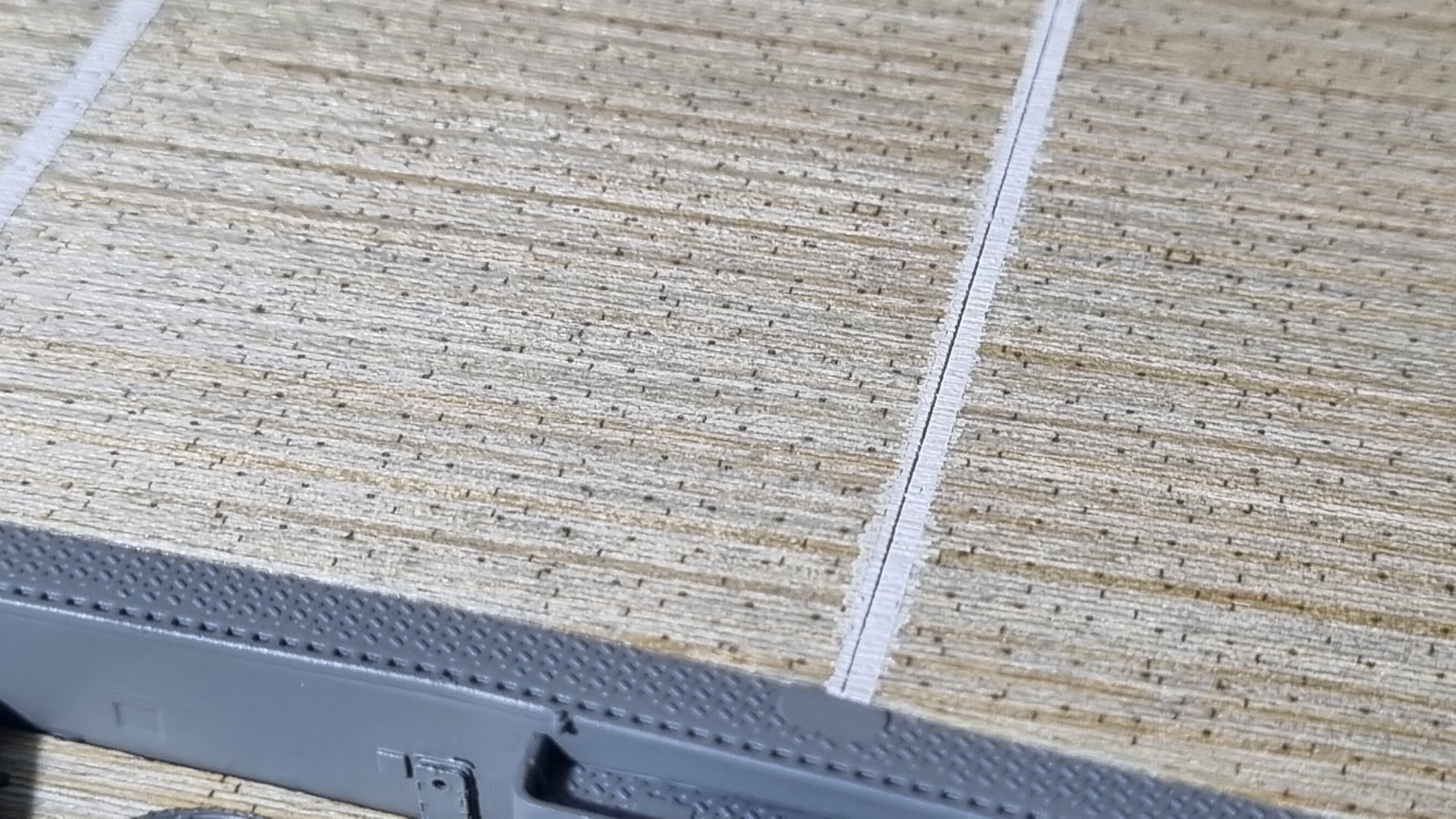 Второе. Стыки частей будут видны. Не думаю что они скроются и не будут бросаться в глаза. А с учётом отрезки торца... Единственное на что можно рассчитывать, это то, что на эти места нанесёт разметка и скроет эти нюансы. Хотя по схеме разметка точно не ложится. Если носовой стык почти попадает, то кормовой обстоит где то на 1,5 см.