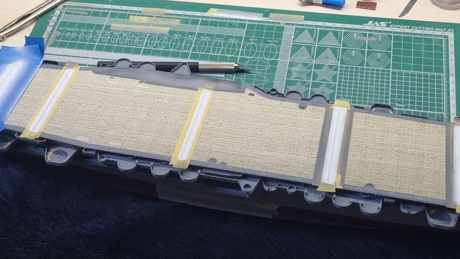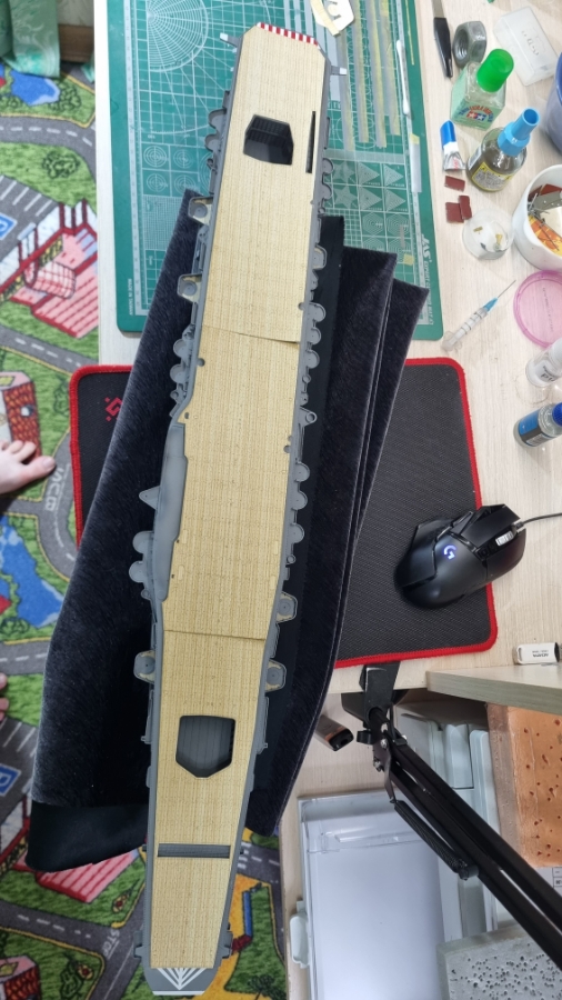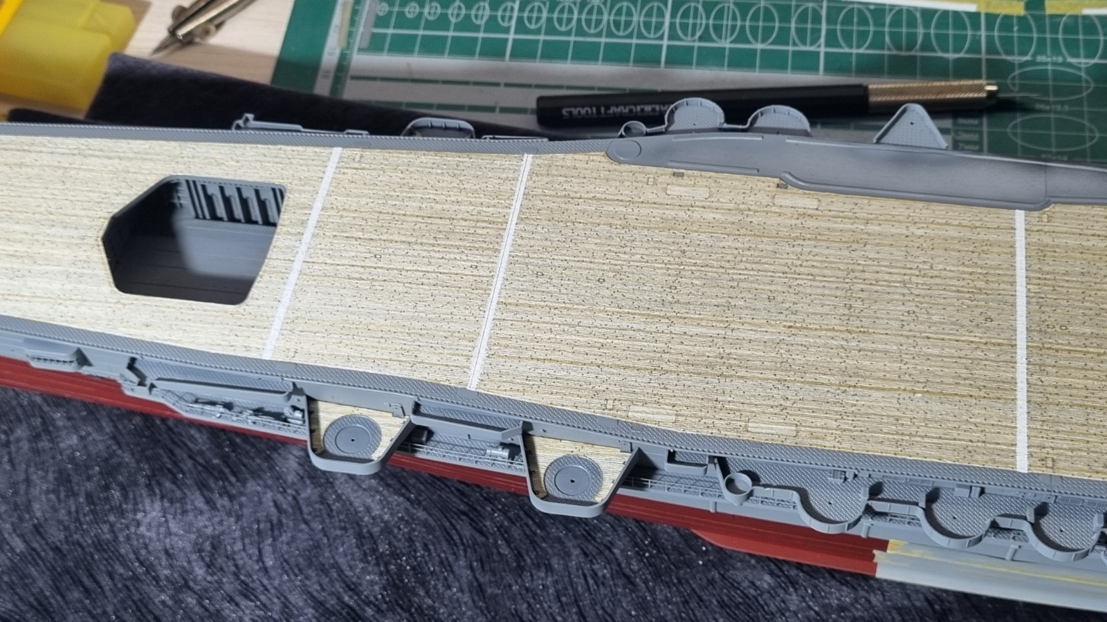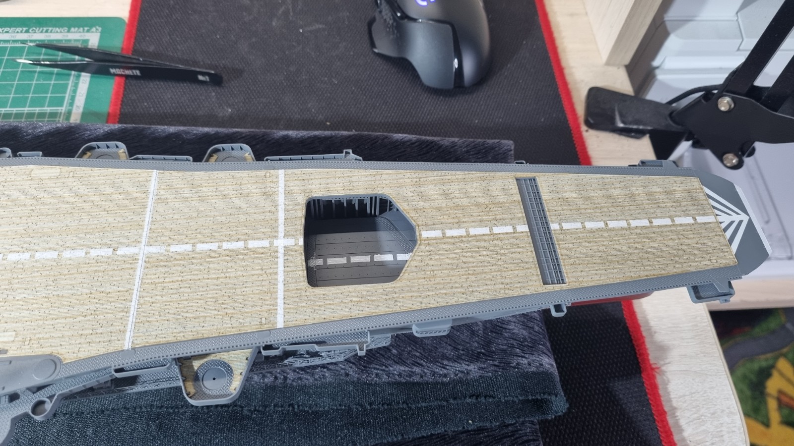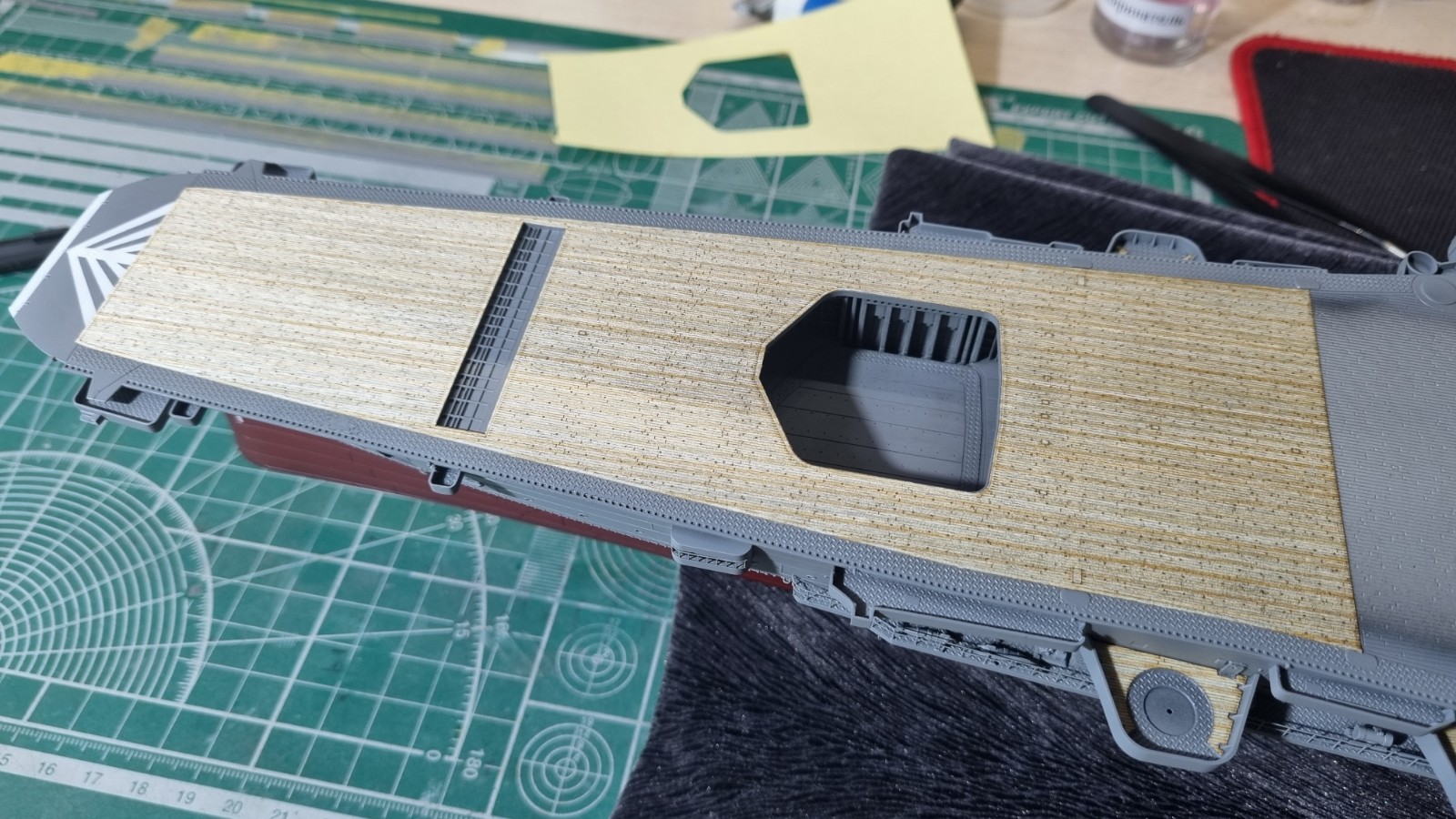 Не понял про трафарет. Полетная палуба будет деревянная жеж или я что то путаю?