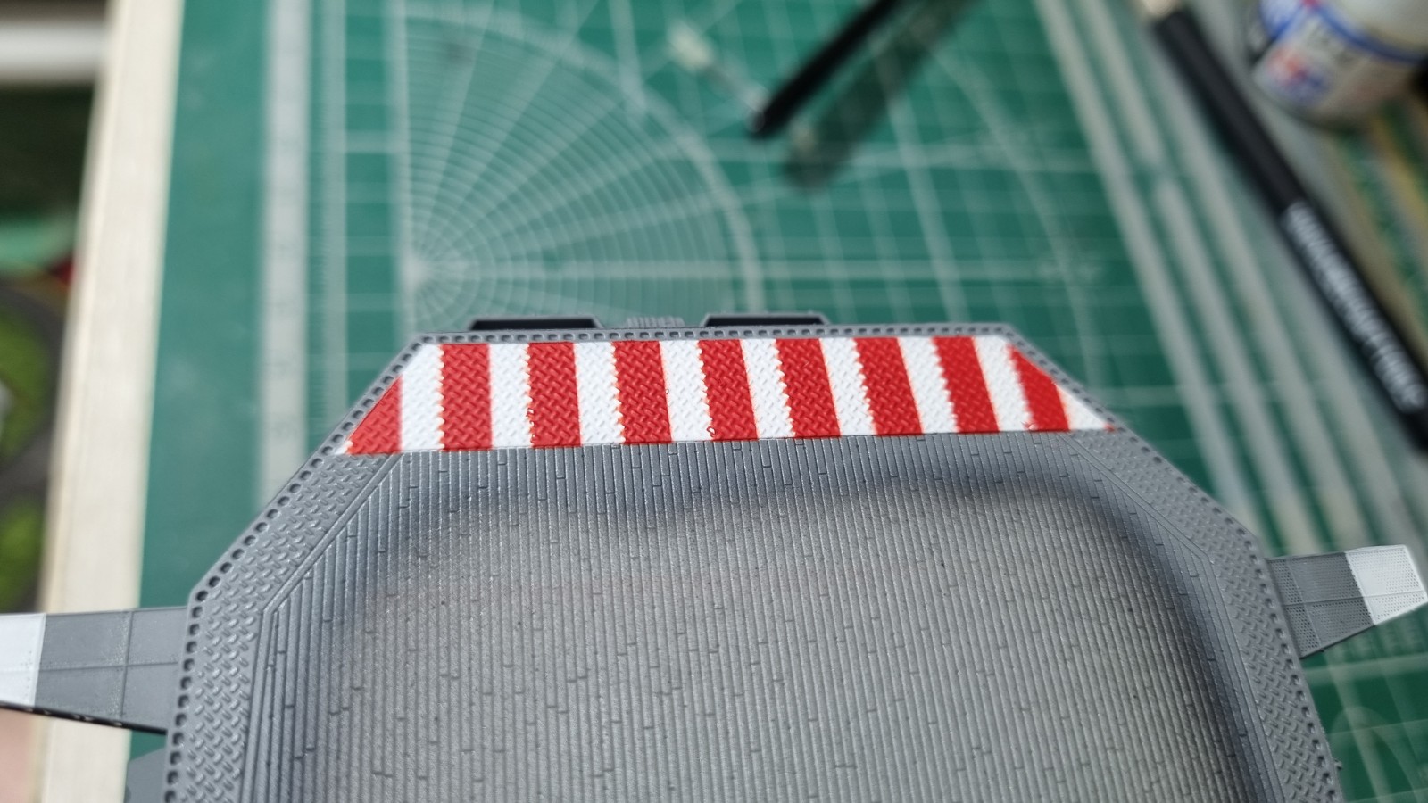 Закончил нанесение трафаретов. Я что то теряю квалификацию)) Зачем, спрашивается, я ободрал маски, когда покрасил белым. Надо же было доклеить полоски и дакрасить красный... Короче восстановил и наклеил)) Правда чечевица со мной сыграла злую шутку. Скотч естественно плохо приклеился и подпустил красное на белое. Пришлось дорабатывать кистью. На фото до и после кисти.