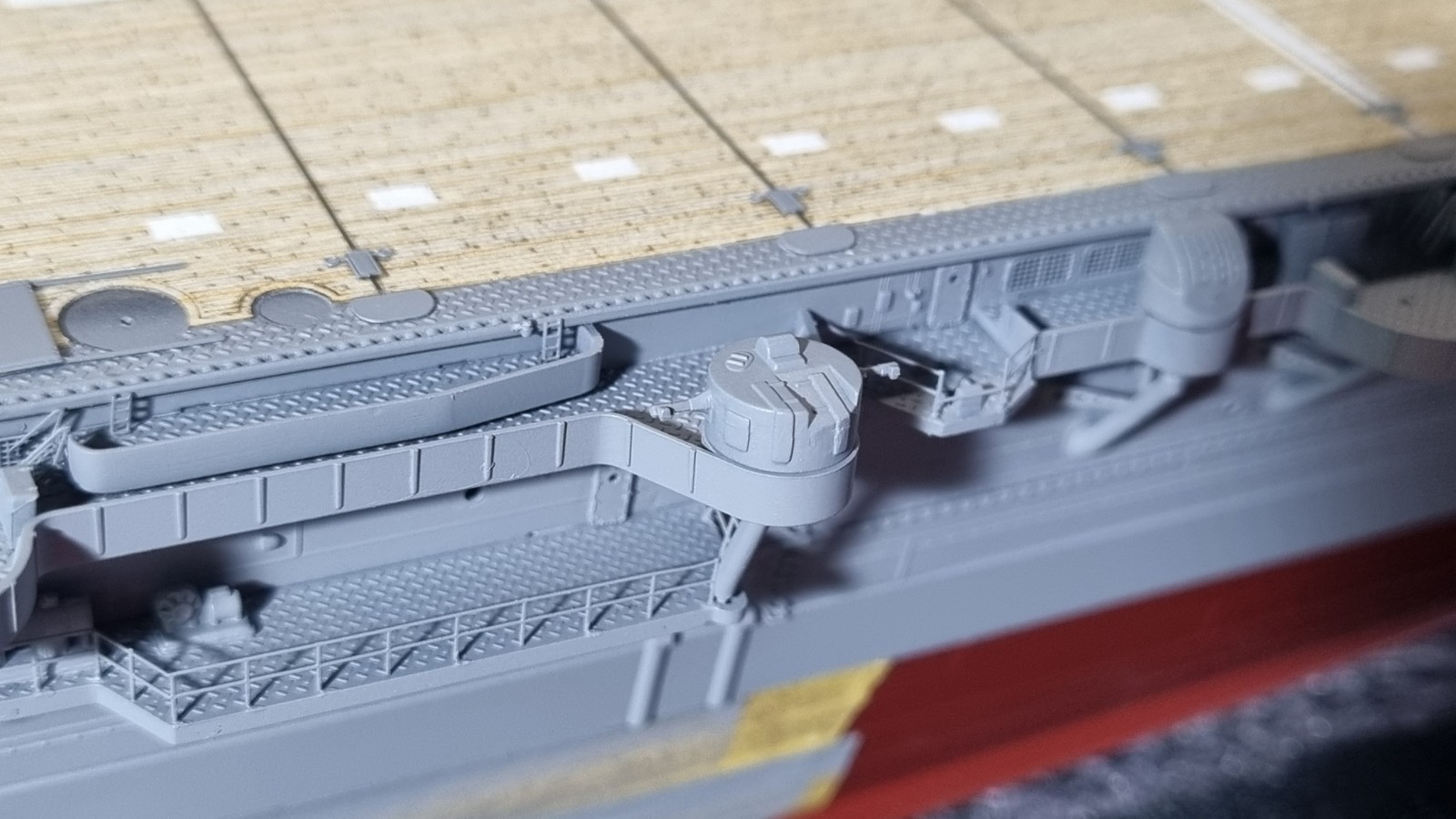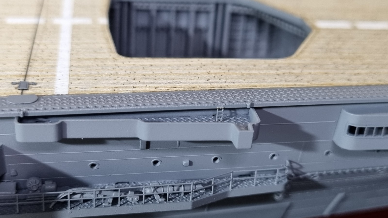 Странно! какое там было крепление палубы к корпусу: только на бортах или же были еще штыри внутрь? По идее, там дополнительную жесткость же самолетоподъемники должны давать..... Видимо "VF" этот момент не продумало..... Учтем, учтем....