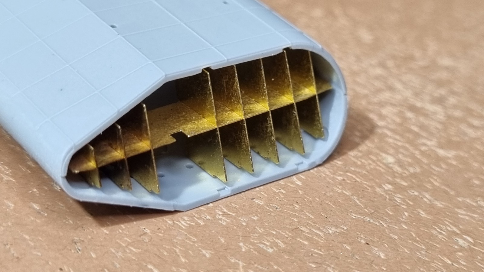 Такой вот момент по трубе. Инструкция вводит немного в заблуждение и предлагает вставить перегородки и накрыть пластиком. Но травление как раз сделано под это верхнее кольцо. И дабы не ловить глубину монтируем перегородки к кол цу трубы.