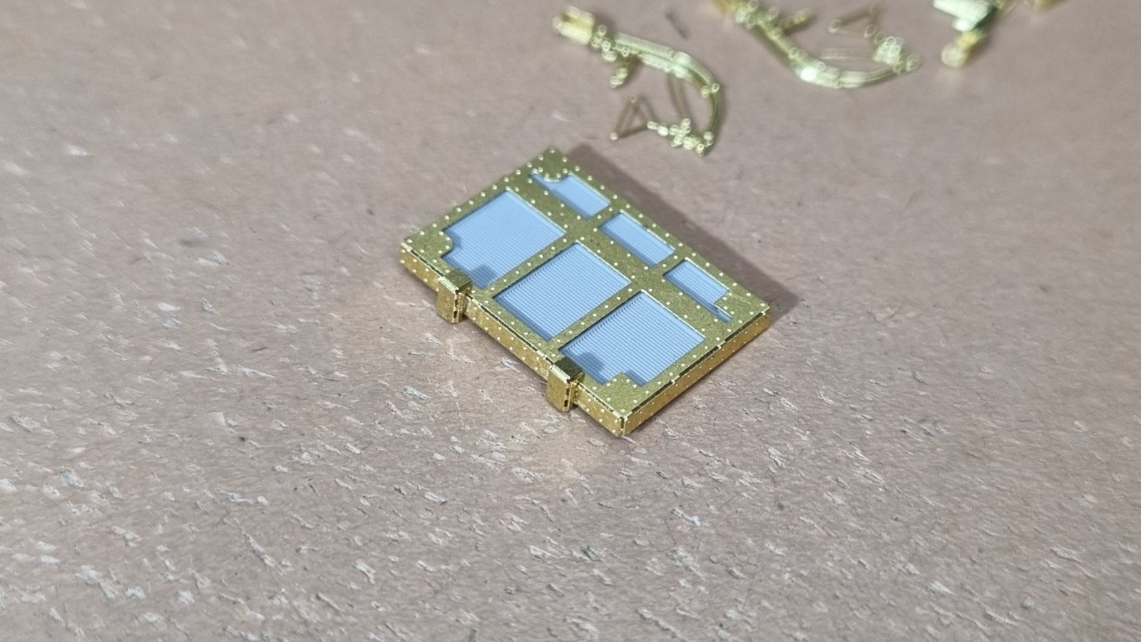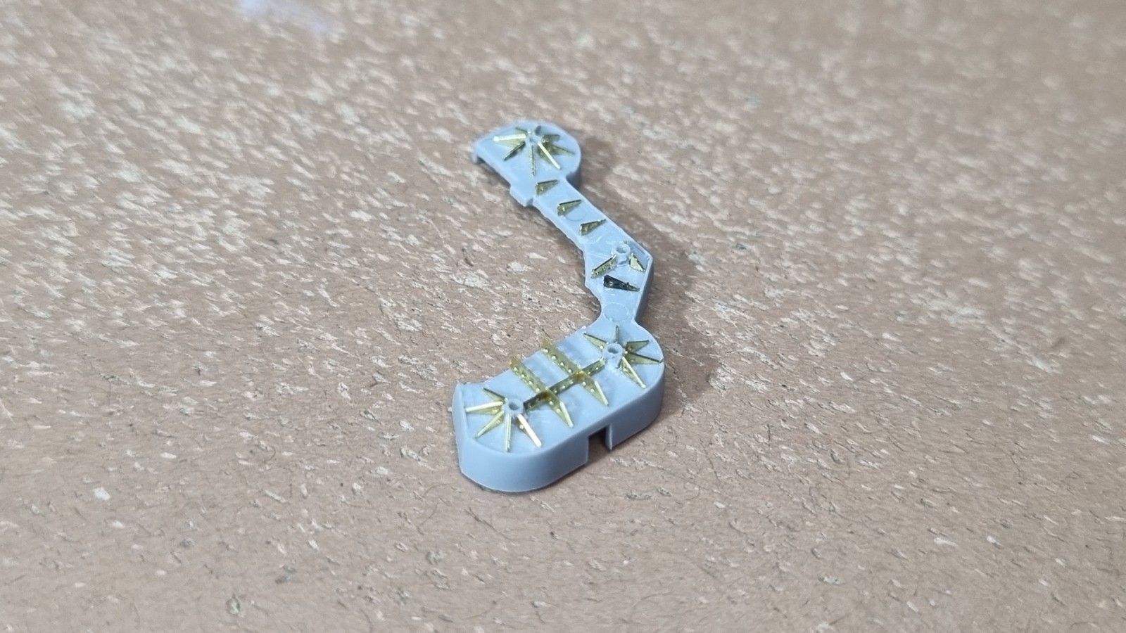 Собрал два забытых трапа и сходни. В травлении есть вариант с поднятие сходни. Но вообще с ними надо проявить смекалку. Инструкция тему не раскрывает и только изучив травление можно понять как и какой вариант из каких деталей собирается.