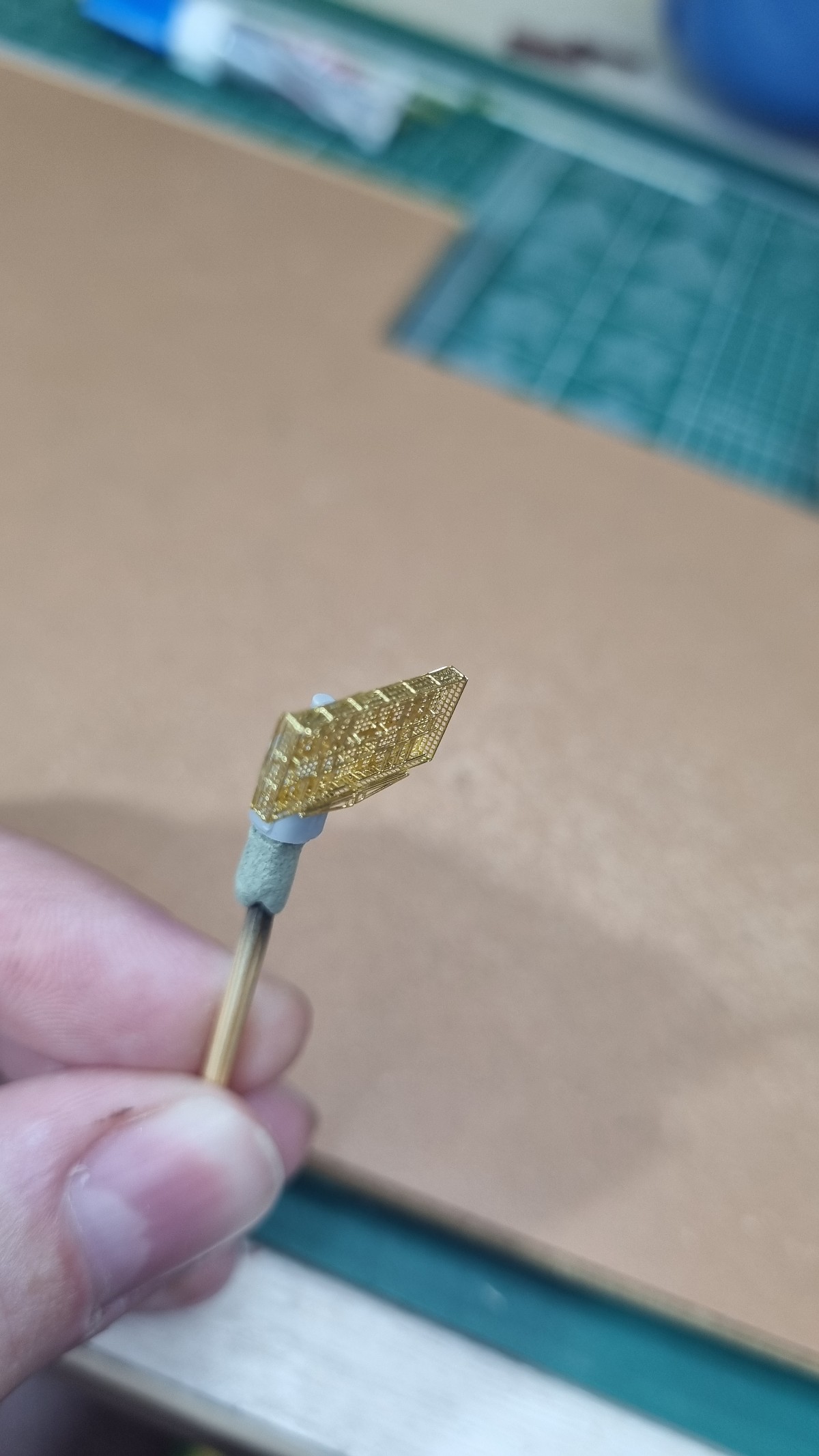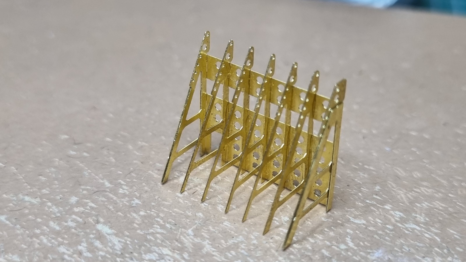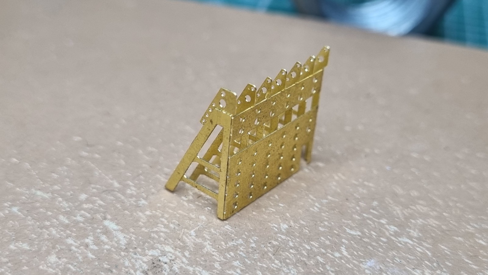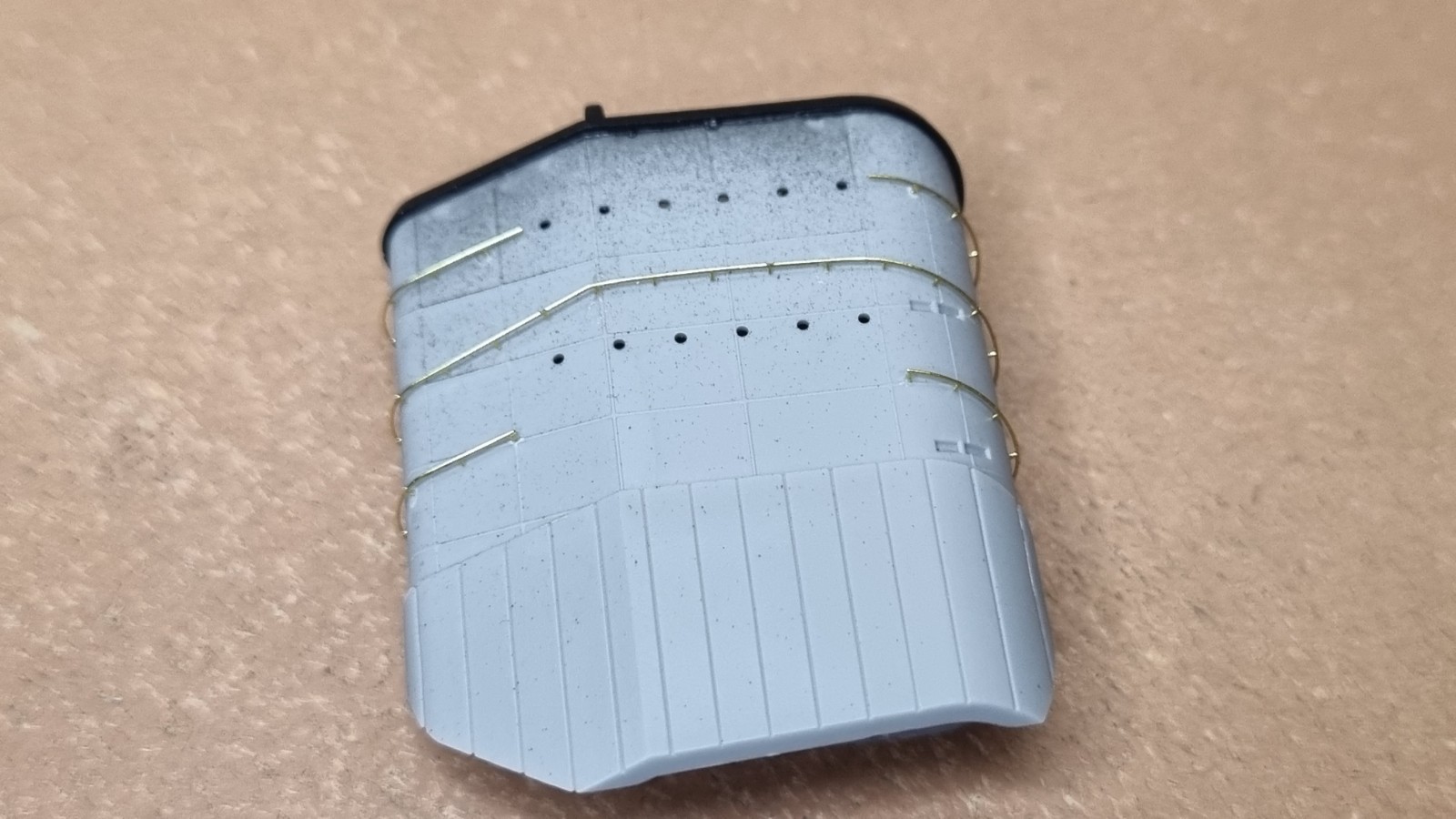 Начал работу с верхней палубой острова. Не заснял сборку рассекателя, но думаю все представляют как набираются эти рёбра))