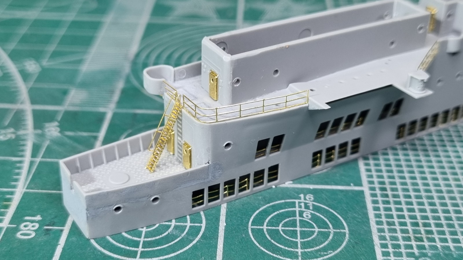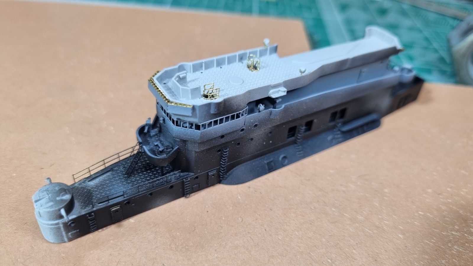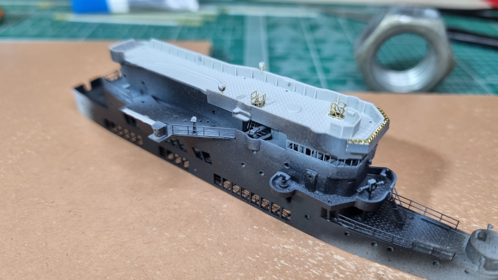 Ну вот. Верхняя палуба острова готова к покраске внутренних полостей и монтажу на остров.