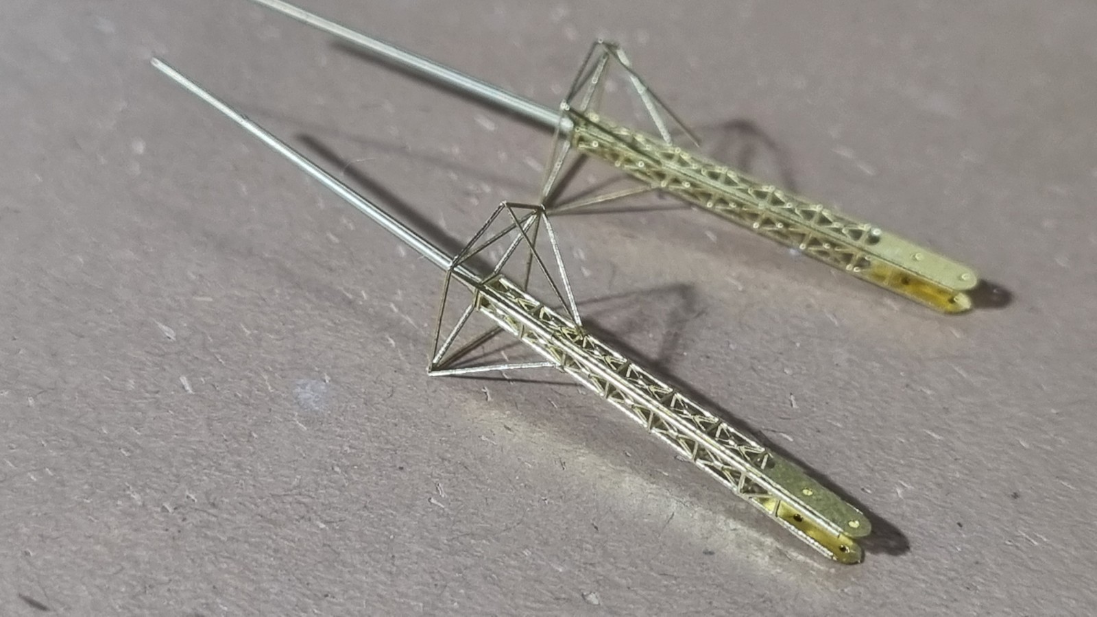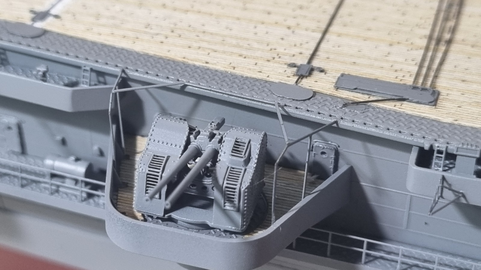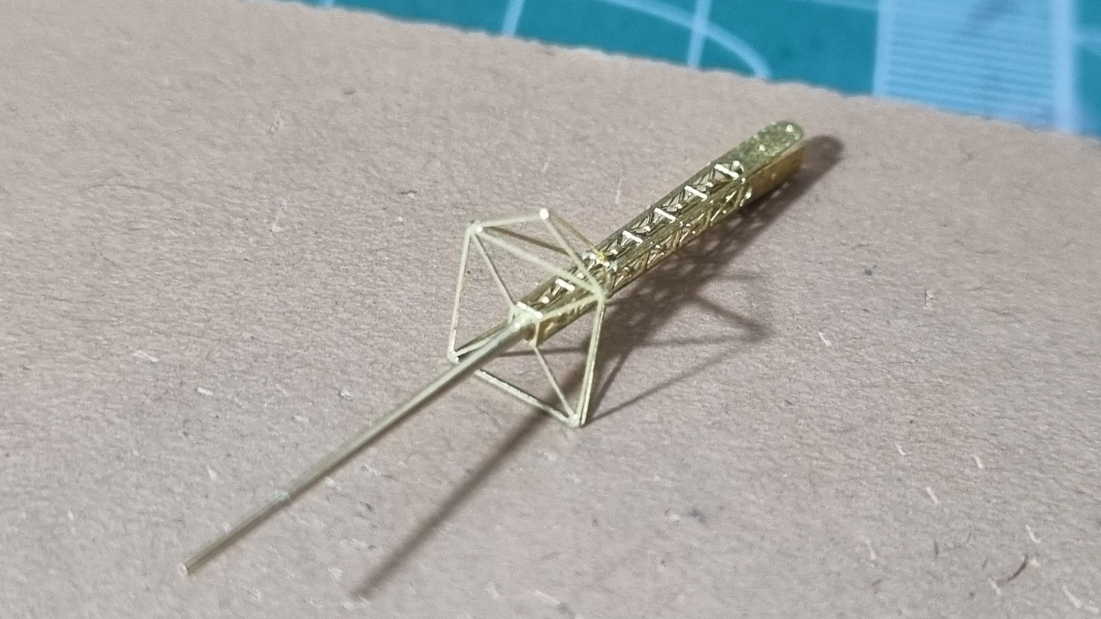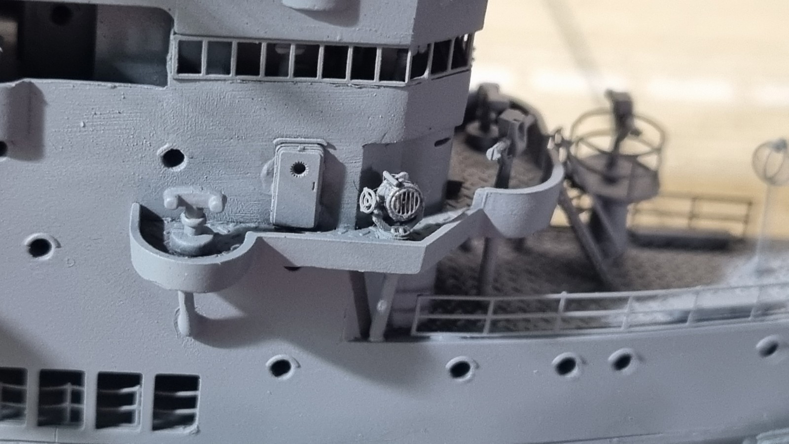 И так... закончил с сетями, дабы команда не падала за борт, поставил пару антенн и развернул носовые посадочные огни, и сразу их покрасил. Кормовые буду красить по месту. Они как то хорошо прилипли и конструкция там ажурные немного.
