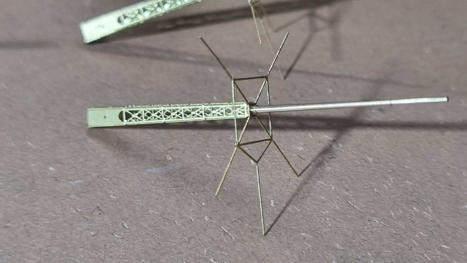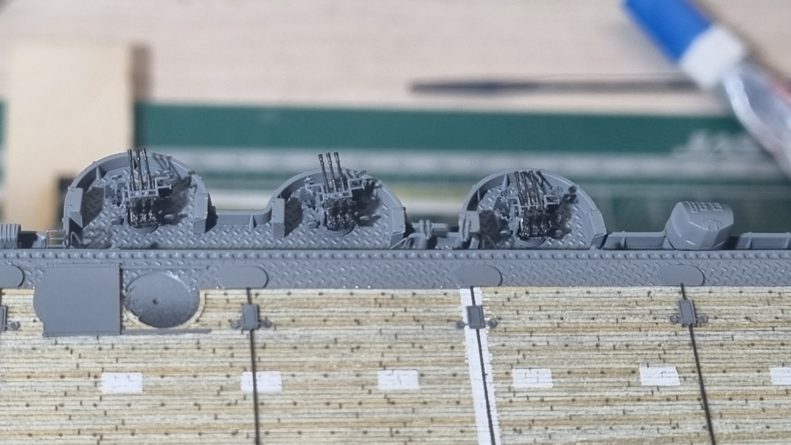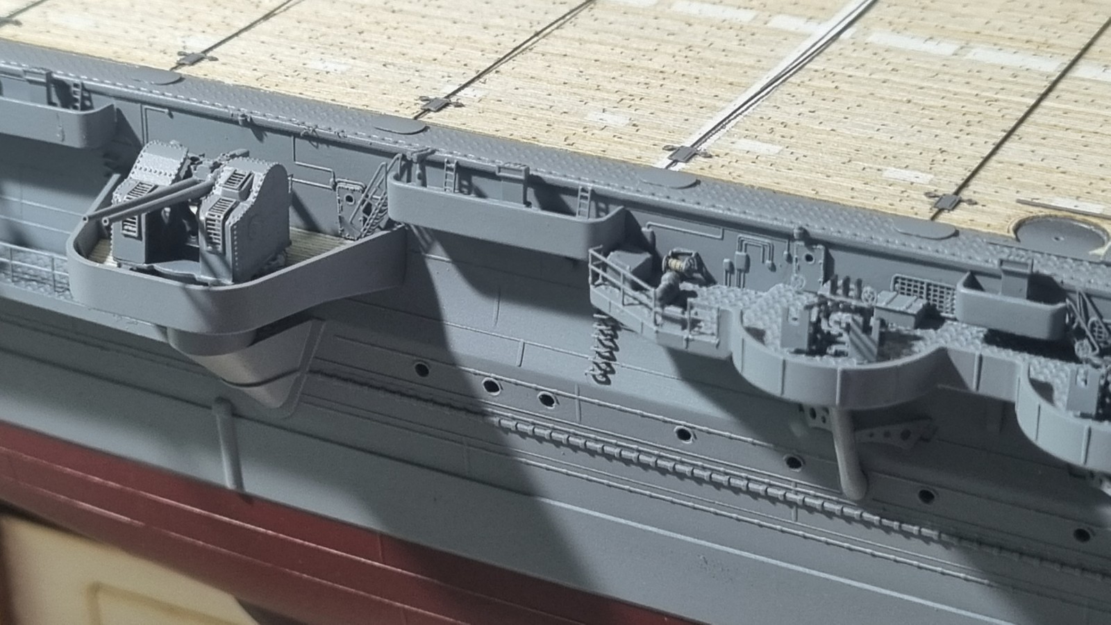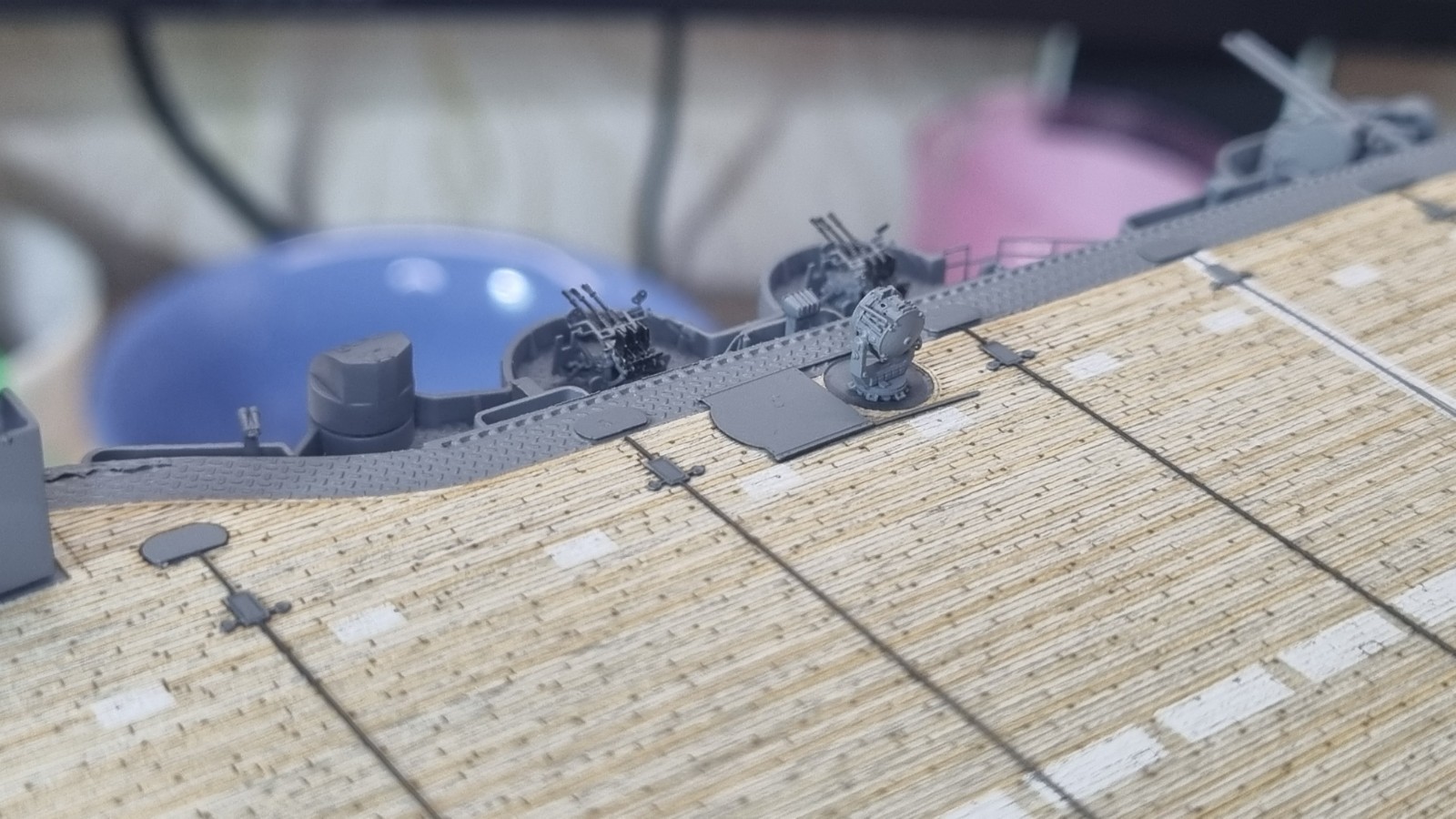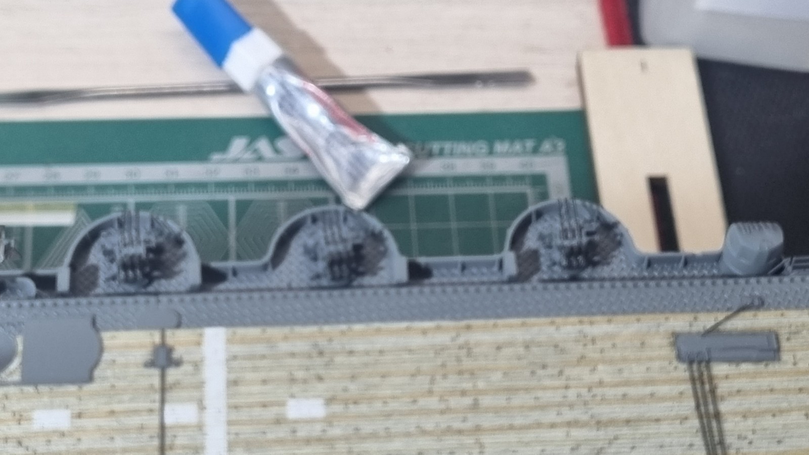 И так... закончил с сетями, дабы команда не падала за борт, поставил пару антенн и развернул носовые посадочные огни, и сразу их покрасил. Кормовые буду красить по месту. Они как то хорошо прилипли и конструкция там ажурные немного.