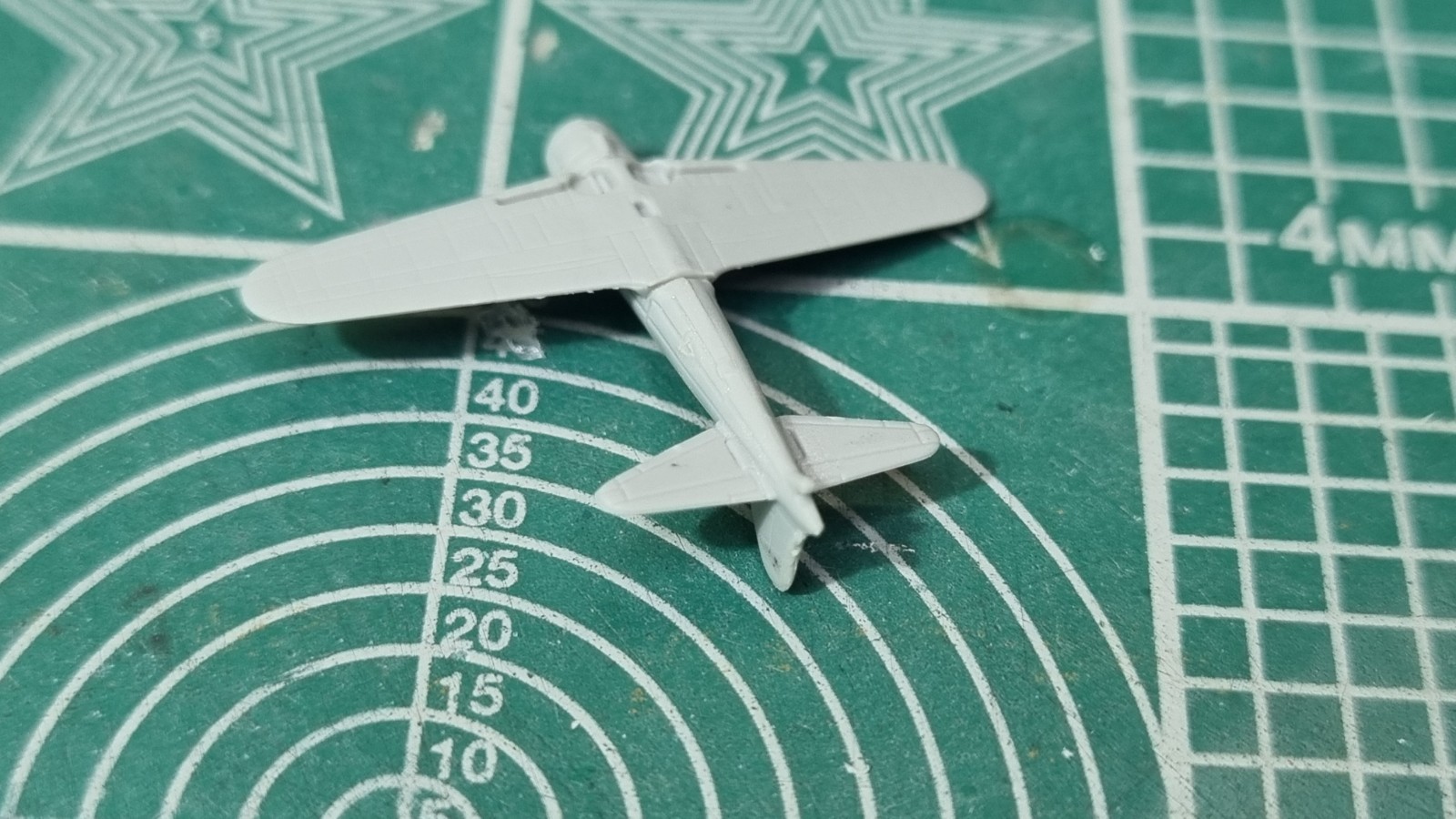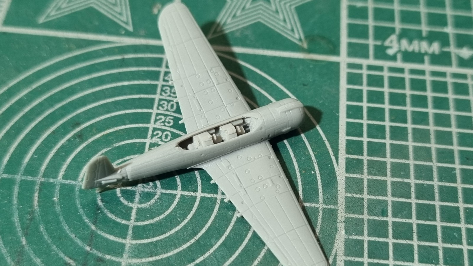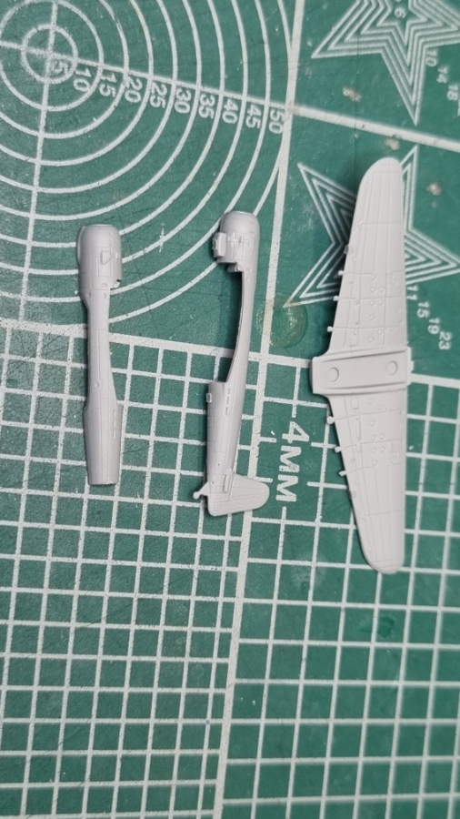 Ну вот и взялся я за авиагруппу. Первый Зеро. Рашивка хорошая, но, как я говорил где то в начале, пластик мягкий. Пока не собраны основные три детали всё очень мягкое и гнущееся. Отливка не очень. Облои на толкателях и вообще края деталей надо дорабатывать. Винт и фонарь пока за кадром. Они будут ставиться на готовый самолёт. Вообще долго самолёт собирался. Понятно что первый, но часа полтора ушло.
