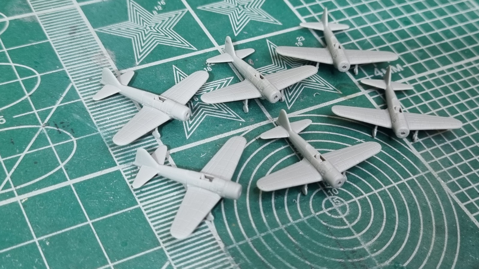 Пора задуматься об авиагруппе. Имеем 19 шт. А6М5 "Зеро" (истребители), 20 шт. D4Y Suisei (пикирующий бомбардировщик), 14 шт. B6N2 Tenzan (торпедоносец). Не думаю что всю эту кучу стоит размещать на палубе. Расстановка будет такая: истребители - торпедоносцы - пикировщики. В каком количестве чего будет пока не знаю. Соберу штук по 5 каждого и посмотрю как будут они занимать место. Если у кого то есть идеи с расстановкой, буду рад принять для раздумий.