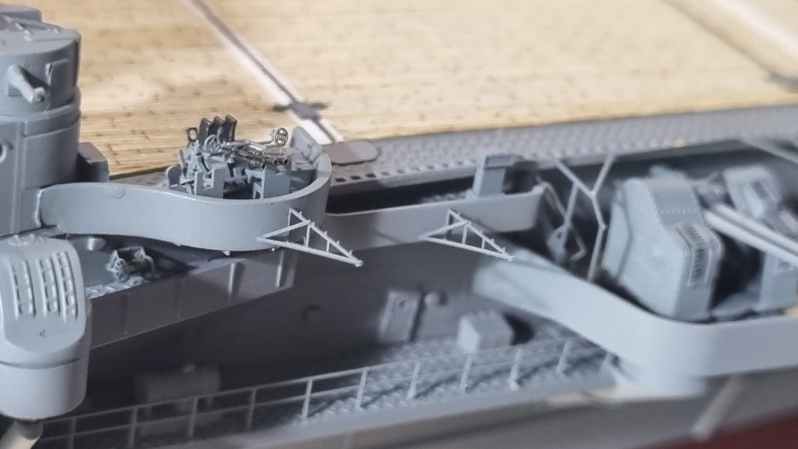 Установил.... я думаю что это огранечители поворота башен. И по бортам добавил конструкции для растяжки такелажа. Я думаю они для этого. Или для натяжки бельевых верёвок)))