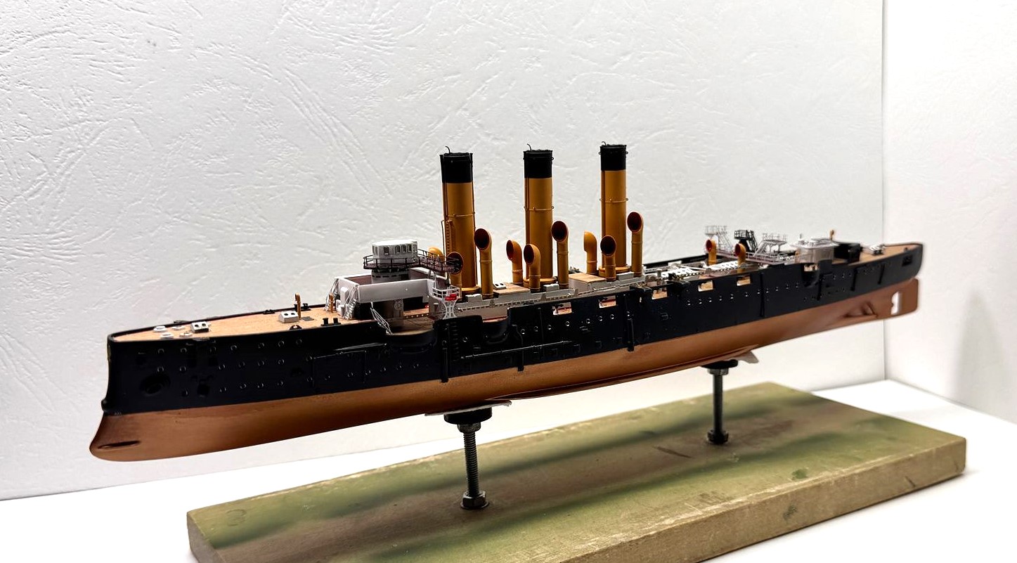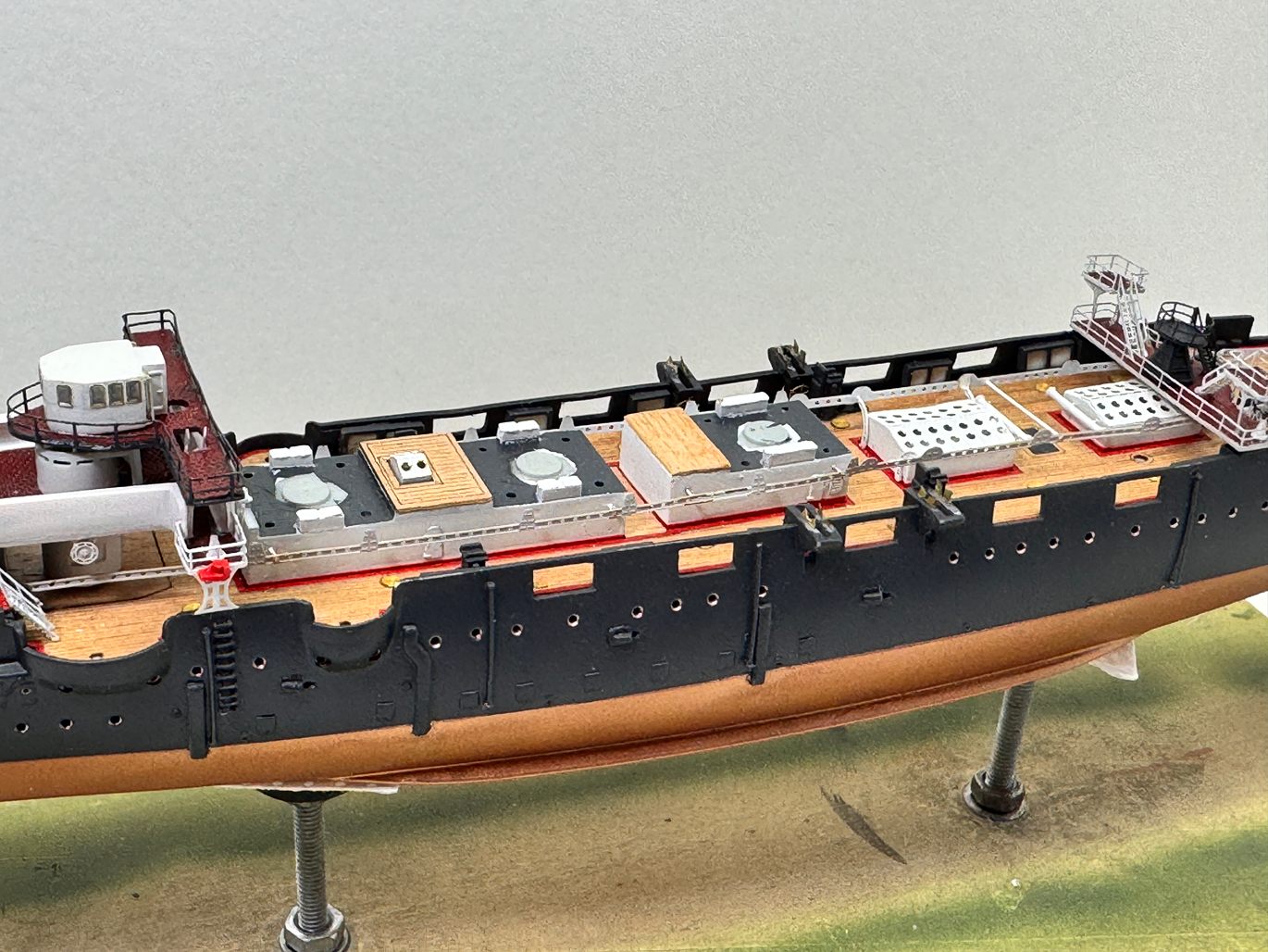. Следующим этапом стройки планирую вооружить кораблик. Частично установил пушки 75 мм на верхней палубе. Ну и фотоотчёт.