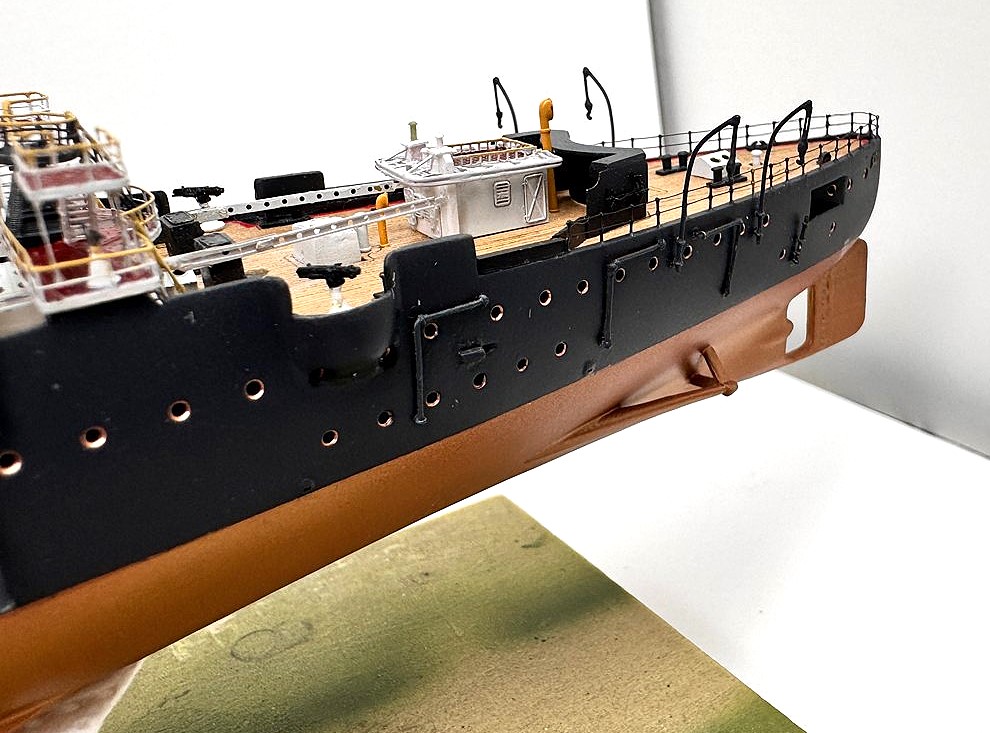 Перила я конечно же подкрашу. А вот по леерам на мостике не решил. Точно помню, что в какой-то книге читал про чёрные леера и именно на «Диане». Можно конечно обрезентить (слово то какое), но ни на одном фото Богинь не видел на мостиках брезент во время испытаний. Пороюсь в своих книгах, поищу где было написано про черный цвет. А ведь изначально я их красил в белый. Не зря же потом перекрасил. Вот блин склероз старческий:f09f98b1::f09f98a5:.