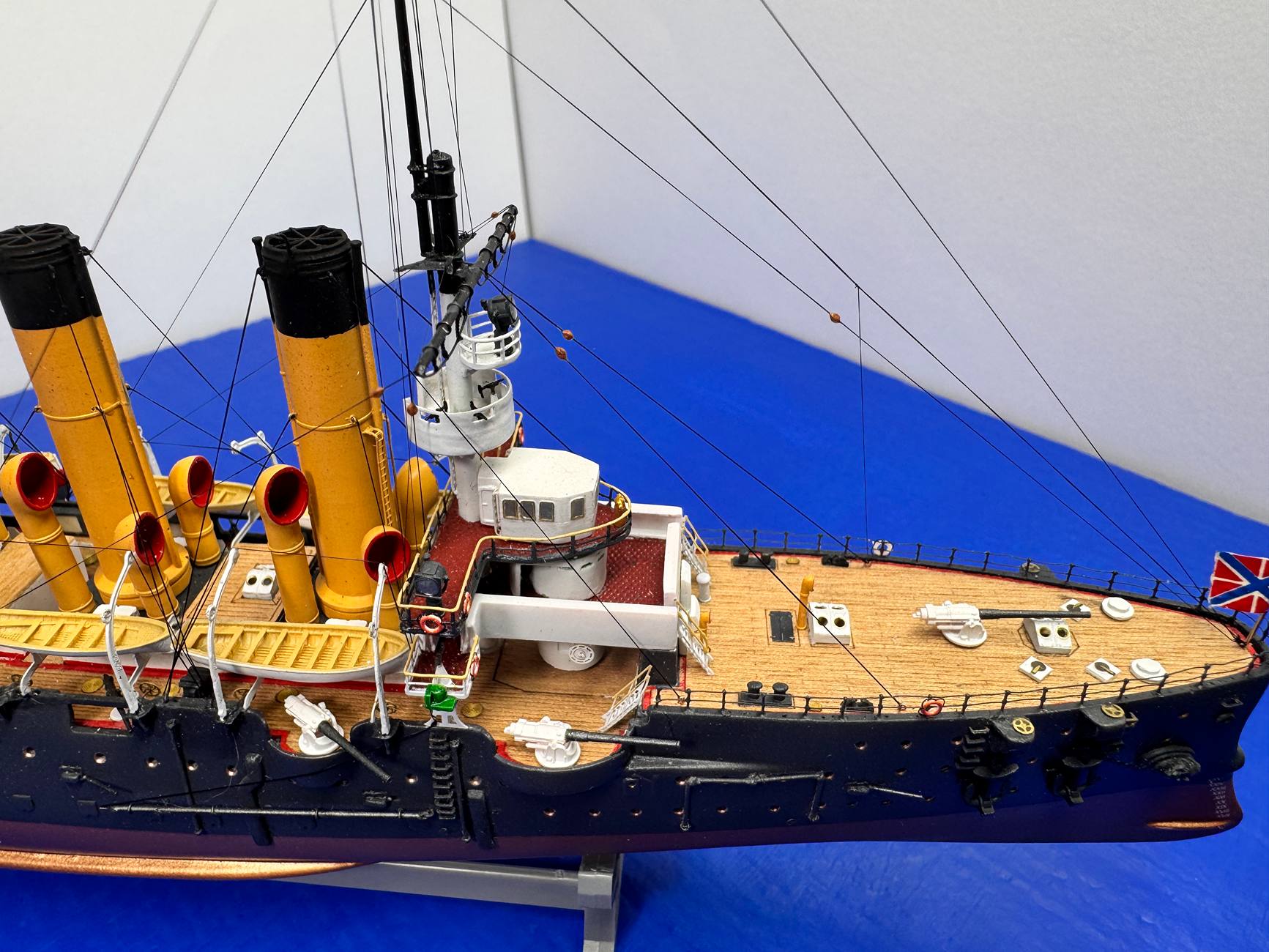 Привет Фёдор. Лафеты на Варяге, Диане и Палладе были белые. На других не знаю. Это сугубо моё мнение. Если дадите ссылку на источник, перекрашу.