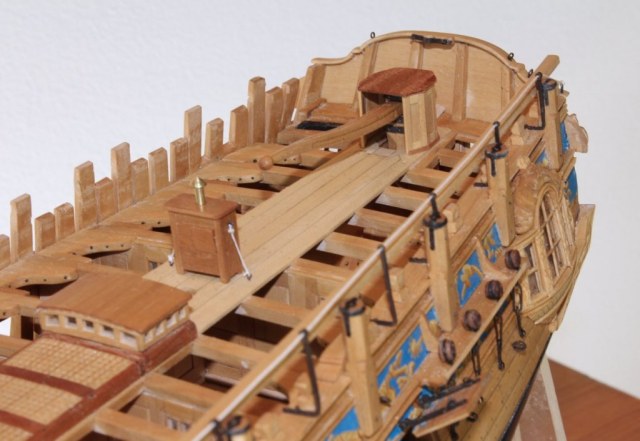 Конечно, этот мостик лучше установить на модель на финальных этапах, иначе будут проблемы с проводкой такелажа.