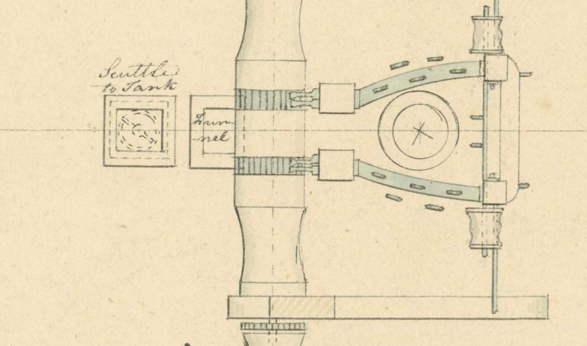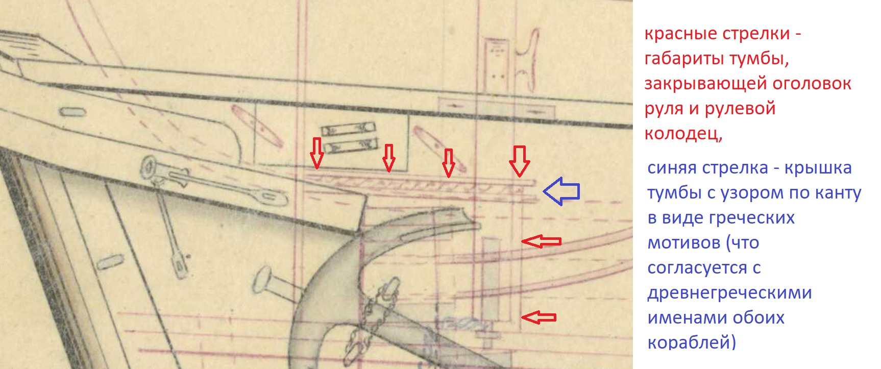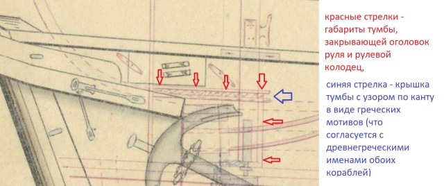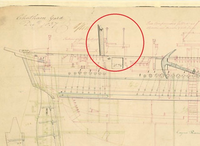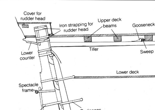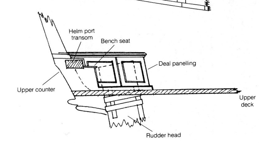 Дело в том, что ранее, до 1845,  оголовок руля закрывала специальная тумба (cover for rudder head).