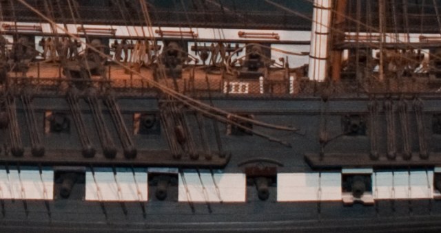и, к сожалению, ни подтверждений, ни опровержений не могу найти, а на музейных моделях по-разному. Но вот с внутренней стороны борта обшивка шкив-гат закрывает одозначно.