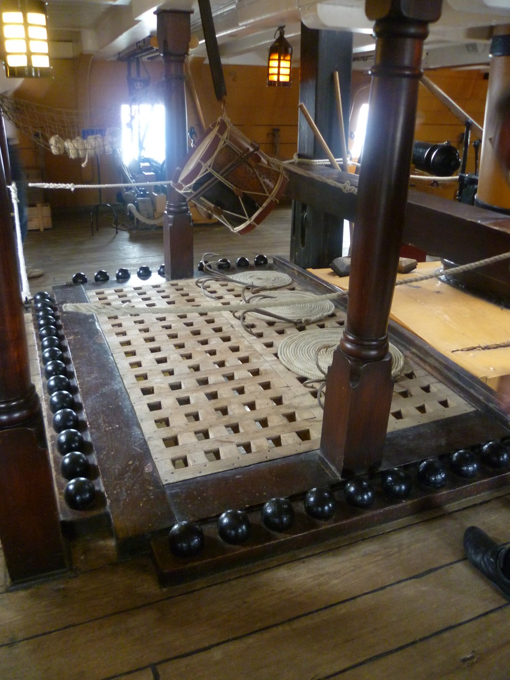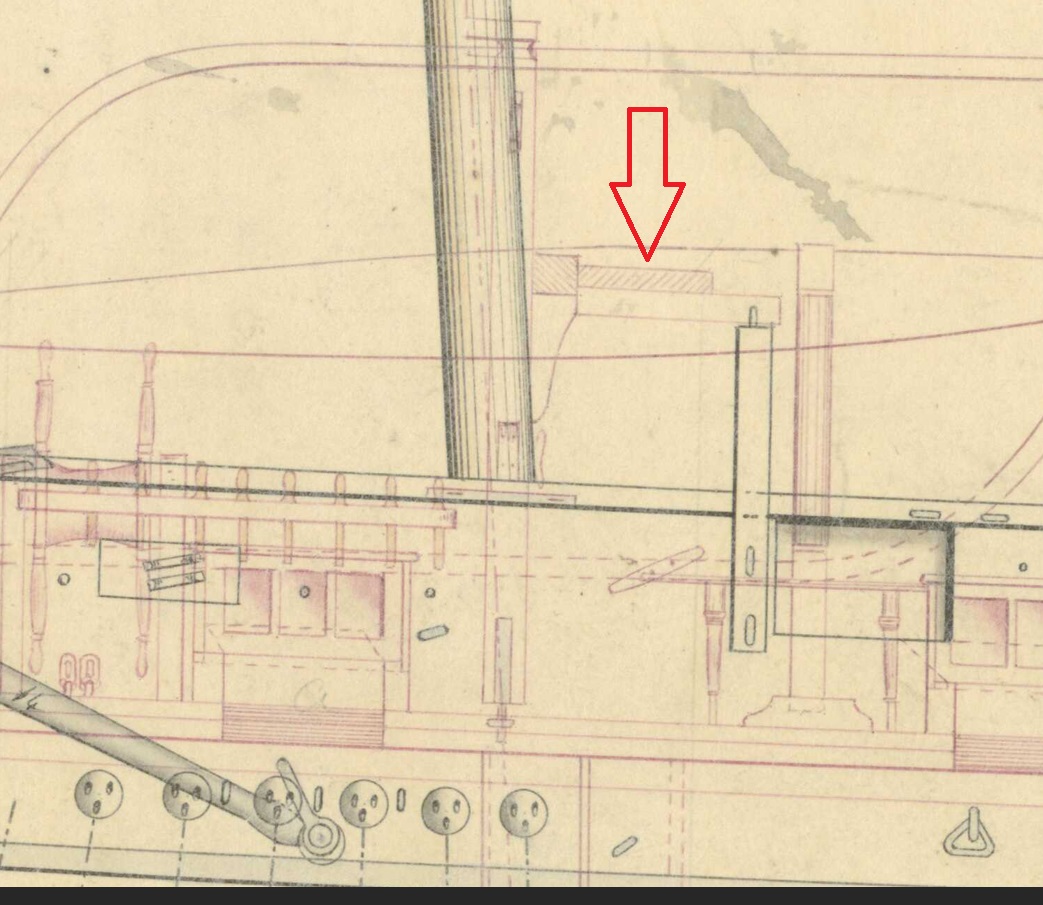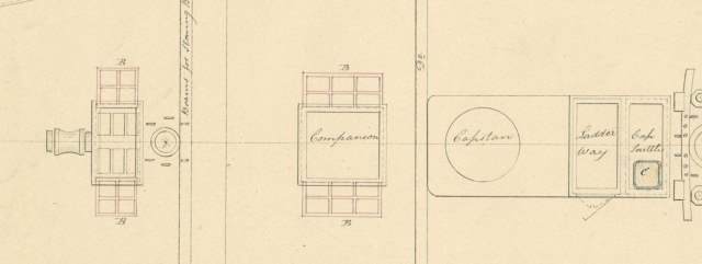 На чертеже "борт", 1839, мы видим трап и металлические стойки с металлическим леером по периметру комингса.