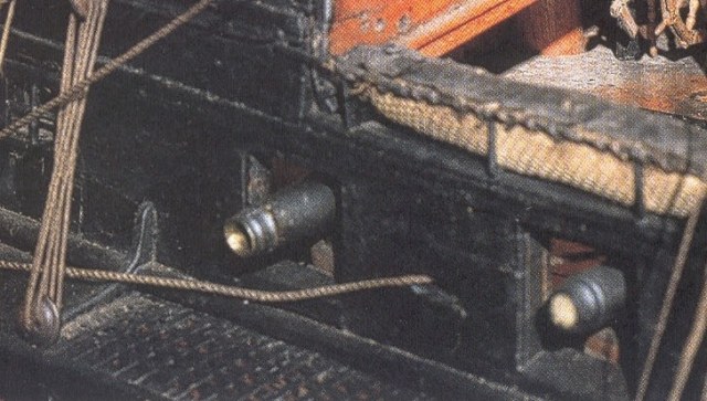 Видимо Оккре видела это фото с румпелем. Предлагают сделать его из прутка. Упрощенно, без изысков. Но прямой и латунный. Судя по фото со дна морского он не круглый полностью. В месте установки в перо он квадратного сечения и остаётся таким ещё на 1/3 длины.