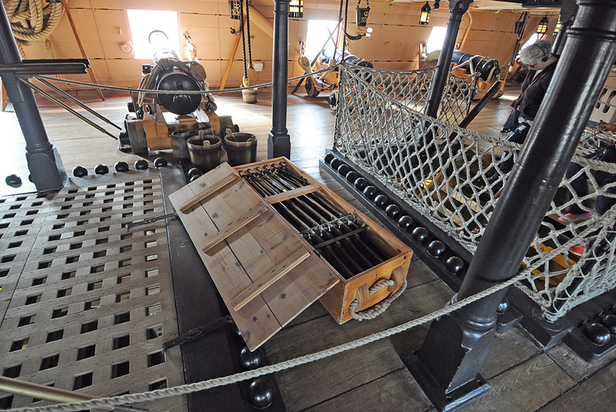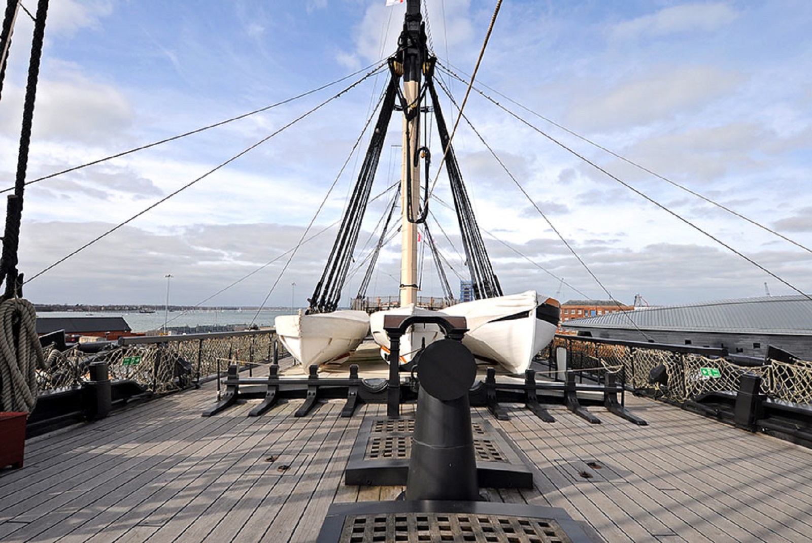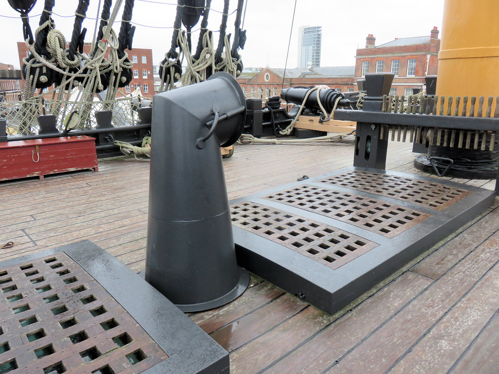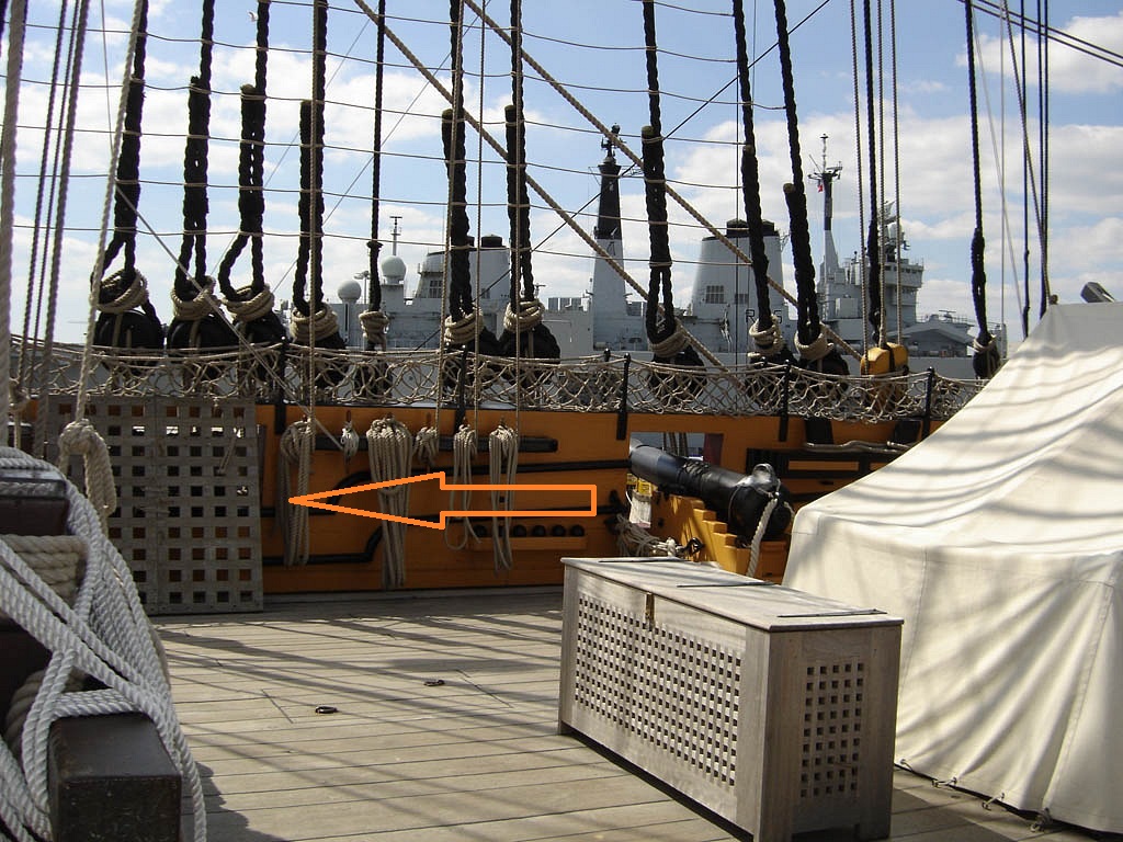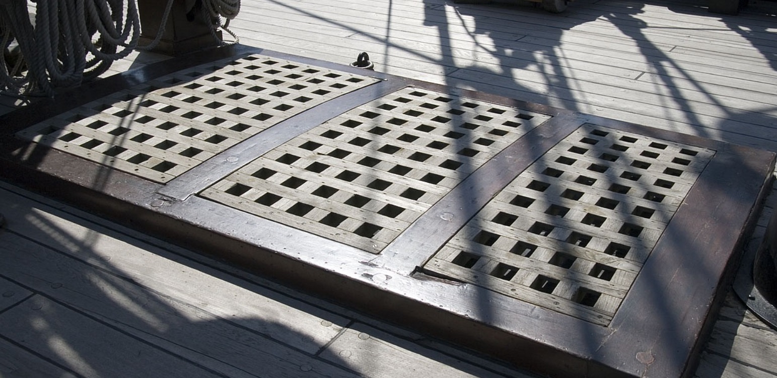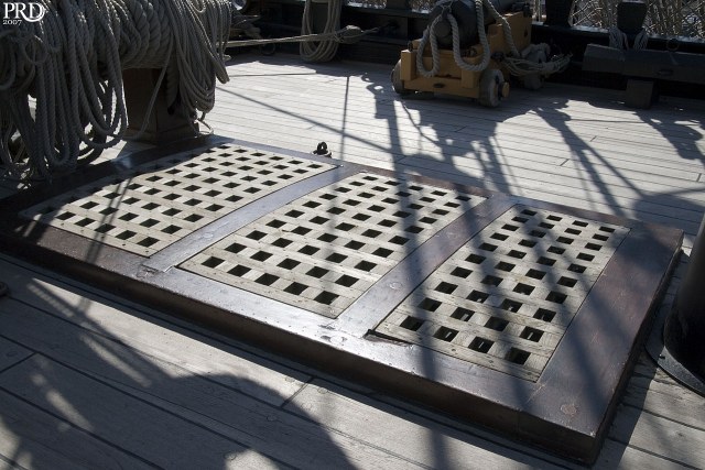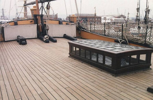 Грота-люк перед грот-мачтой, известный так же как "главный люк", "носовой грота-люк", показан с расположенными по бокам палубными