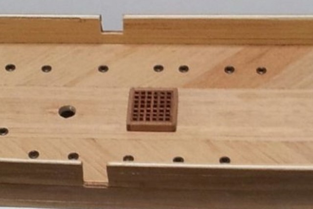 Теперь о решётках. Ты что-н прикупил из адекватного? Насколько мы все понимаем, жуткую яйцерезку, которую многие фирмы кладут в наборы под соусом "это рустерная решетка!", использовать нельзя ни в коем случае. Рустерная крышка /решетка настоящего корабля делалась из продольных планок, лежащих на такой же толщины поперечных силовых планках. Силовые планки имели погибь (чтобы в шторм с укутанной парусиной крышки быстро стекала вода). Пустоты, образуемые перекрестиями планок, "ячейки", должны быть такой же ширины, что и планки, а шаг их таков, чтобы и воздух вниз поступал, и при ходьбе по решетке не провалиться каблуку сапога.