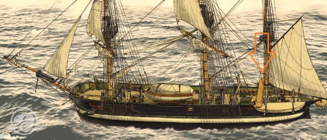 запасный руль, точнее, его оголовок рудерписа. Он выпал из своего отделения за грот-мачтой (обсуждали чуть ранее).