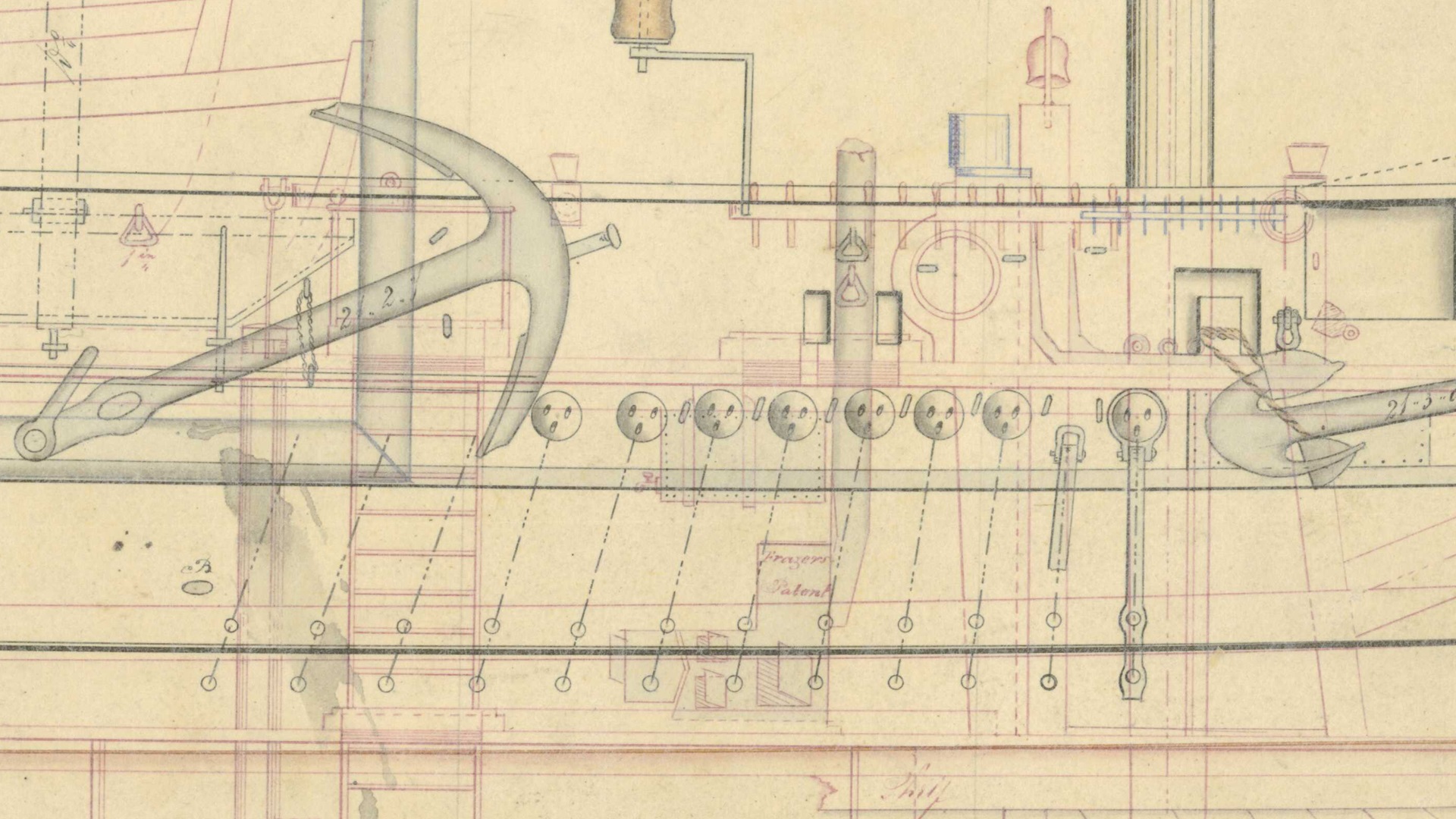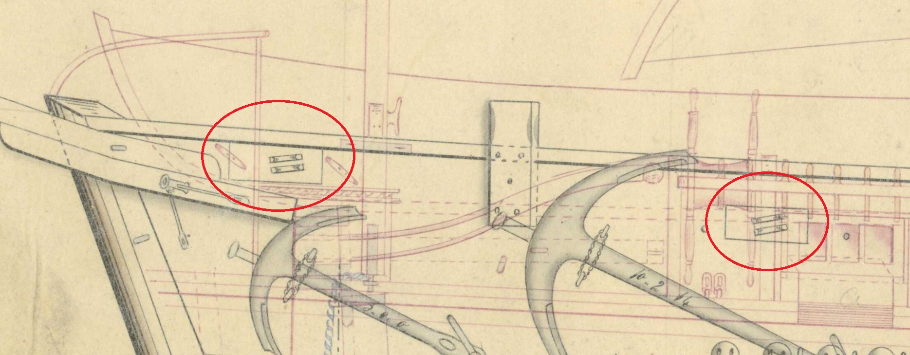 Остались два лючка в носовой части корабля на чертеже 1837 и три люка на чертеже 1839.