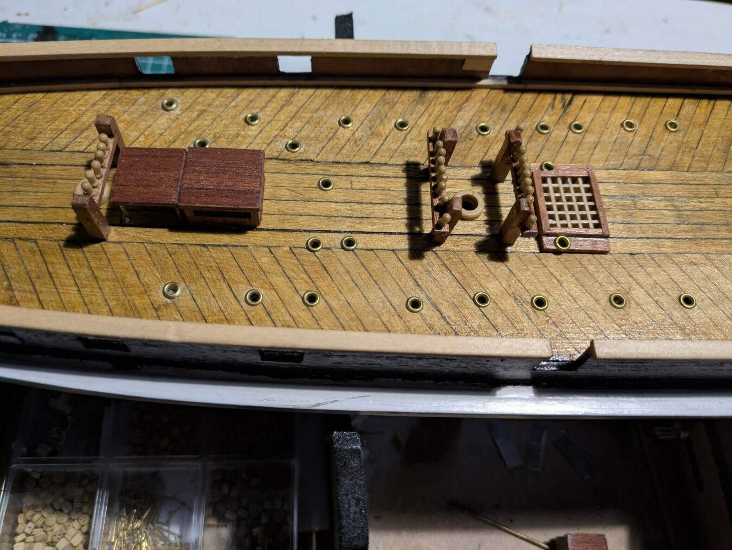Так... Ладно. Понял про решетки. Из набора не пригодятся. Пойдут в список покупок. Значит пока займусь шкив-гатами и обшивкой фальшбортов.