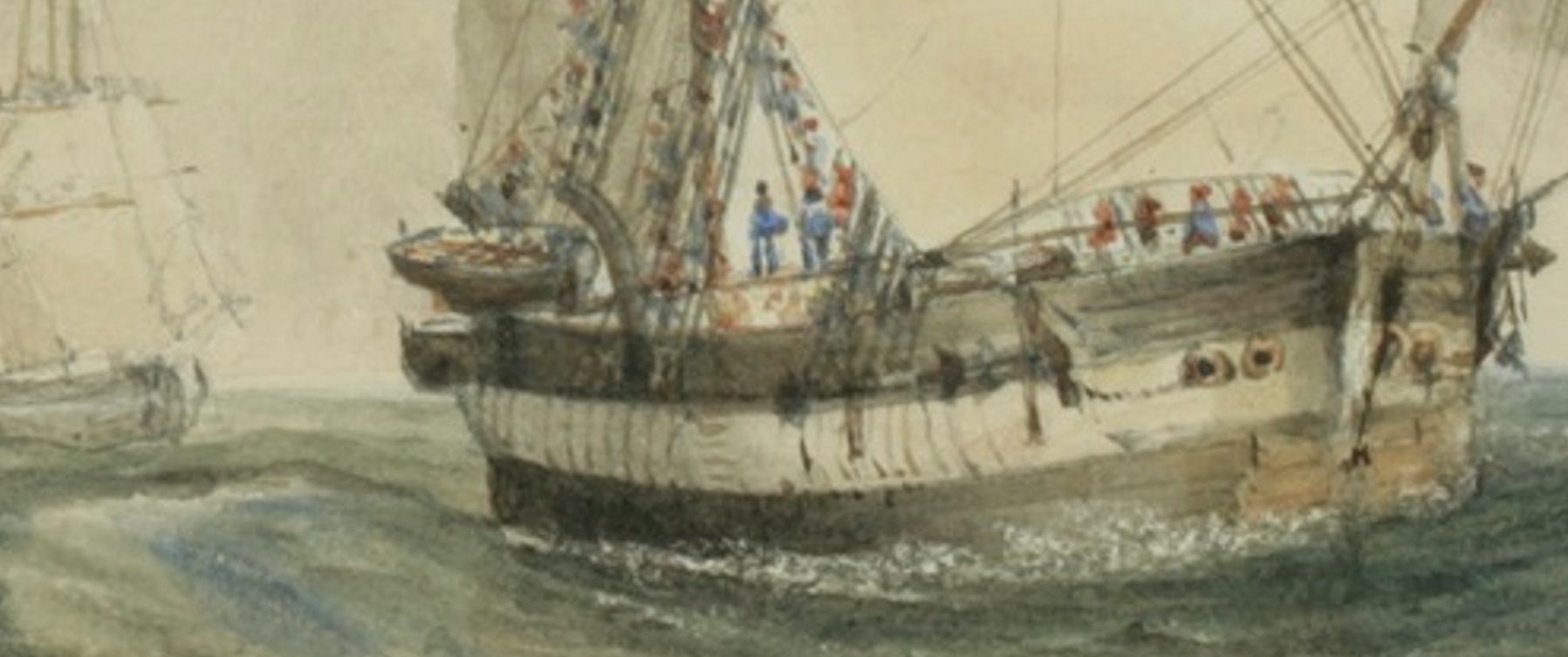 Дек-транец можно сделать одного цвета с ватервейсом и нарубными поясьями. Ватервейс и трацы делались из дуба, а то, что нарубные поясья тоже именно дубовые, указано на чертеже сечения по миделю. Палубе было уже более десяти лет, доски вполне могли потерять смолистые вещества в древесине от солнца и просаливания при постоянном драинии морской водой, и цвет всей палубы мог сровняться, высветлиться.