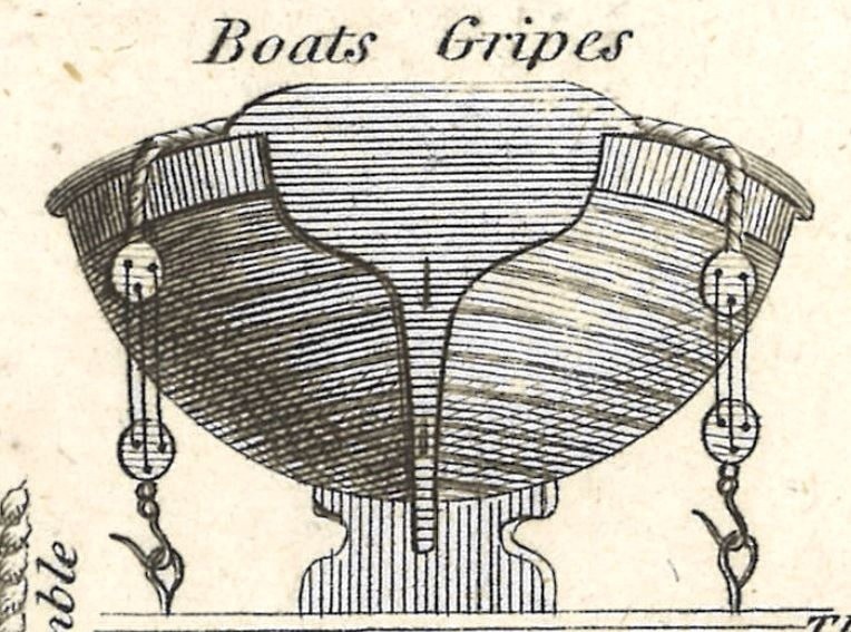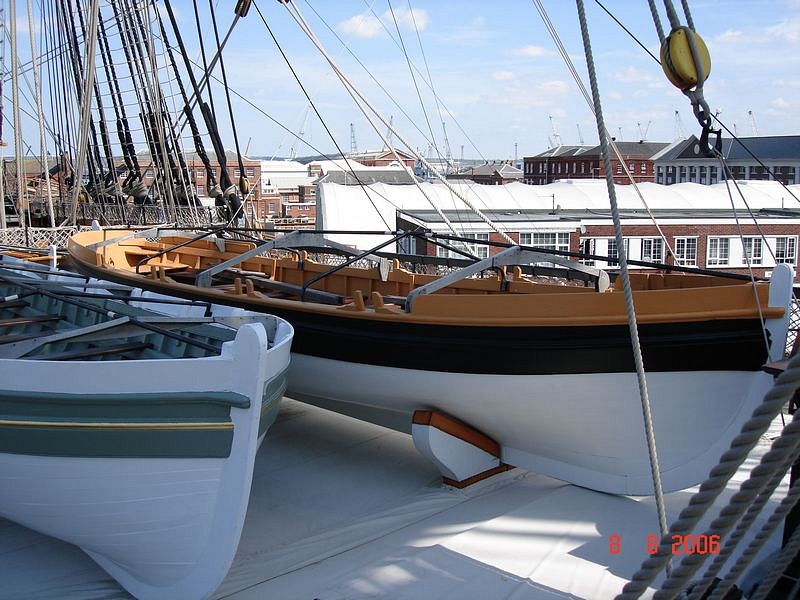 Кроме того, кильблоки у Террора имели "талию" между опорами и лапками. Так же, как на картинках выше (например, см первую картинку и фото шлюпок Виктори). Эта "талия" была нужна для укладки запасных стенег и реев вдоль кильблоков. Запасный рангоут около шлюпки на Терроре заметен на картинах Оуэна Стенли.Дмитрий Ревякин написал(а):А именно увеличить высоту кильблоков.