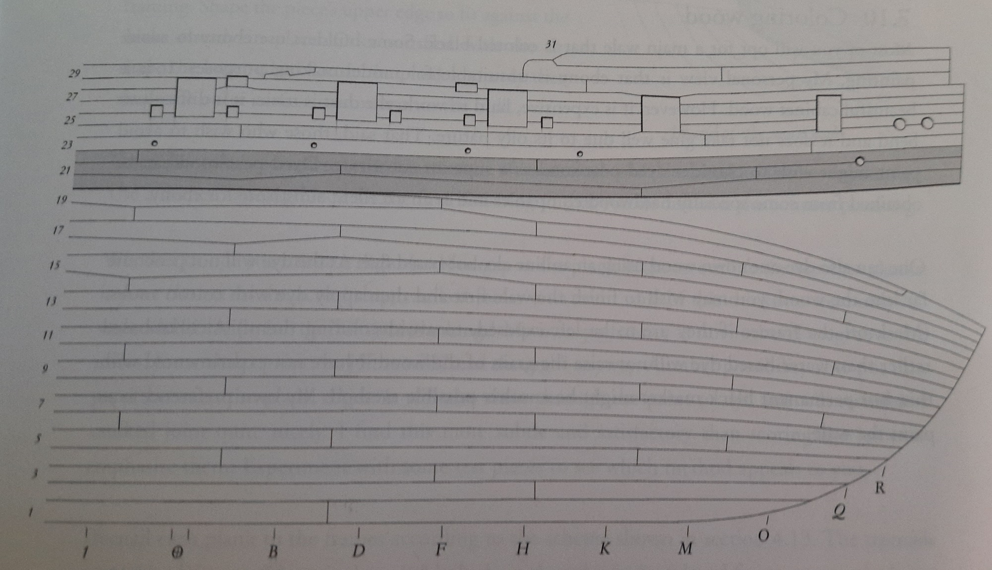 Что то я похоже погорячился. Судя по чертежу поперечника фальшборт зашивается изнутри. И стоек на нем не видно. Видимо опять упрощение в виде просто окрасить фанерку...