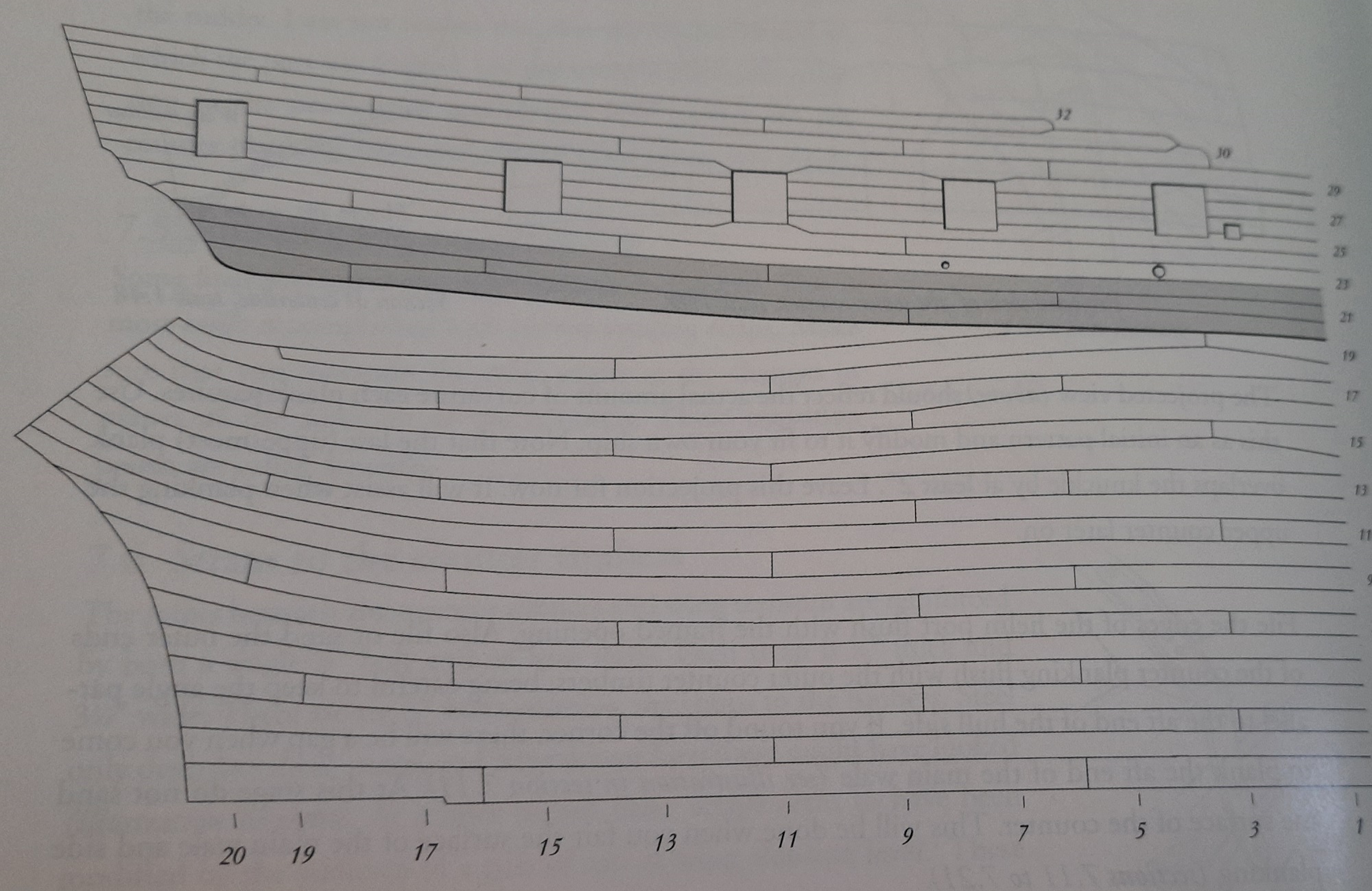 Посмотри обязательно правильную раскладку борта (не по мурзилке). Во вложении схема по которой я делал, но посмотри по своему кораблю, может какие-то нюансы есть. Рейка после пропаривания гнётся хорошо, на ребро труднее, но тоже можно. Я пропариваю так: на деревянную доску наливаю лужицу воды, погружаю в неё рейку и сверху чуть придавливая проглаживаю утюгам на максималке. И так несколько раз, пока податливость не появится. Знаю, что есть способ нашатырём. Михаил Безверхний после вымачивая в нашатыре рейки груши её чуть ли не в узел завязывал. Но тут надо иметь какой-то футляр для замачивания (из трубки какой-нибудь, например).