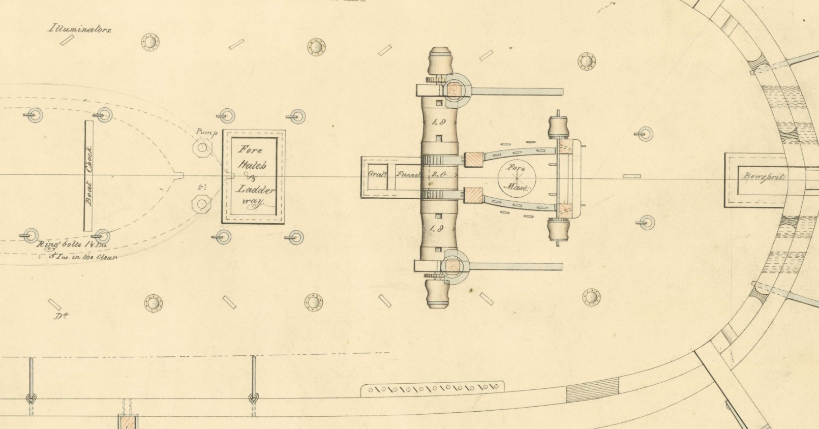 не совсем понятно, а что там такое около фока-люка? Какой-то ещё один прямоугольник... на оригинальном чертеже никакой "суеты" там нет: небольшие лючки под брашпилем находятся гораздо дальше в нос корабля
